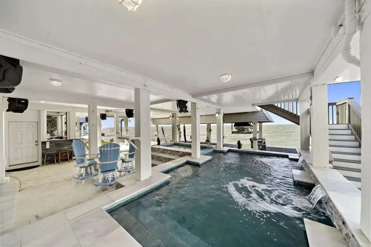 A private bayfront retreat made for golden-hour memories. Enjoy a private pool and fire pit, and a fishing pier for nice, quiet mornings by the water. If your group prioritizes outdoor time, this one stands out.