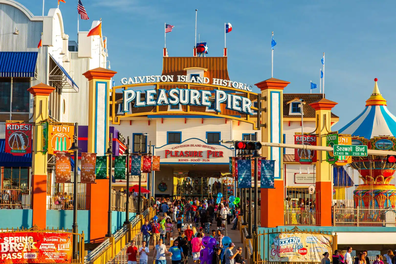 Pleasure Pier is a must-visit destination for anyone traveling to Galveston. Located right along Seawall Boulevard, its prime location and abundance of things to do make it an amazing place to visit for people of all ages, especially families looking for the next fun thing to do during their trip to Galveston.