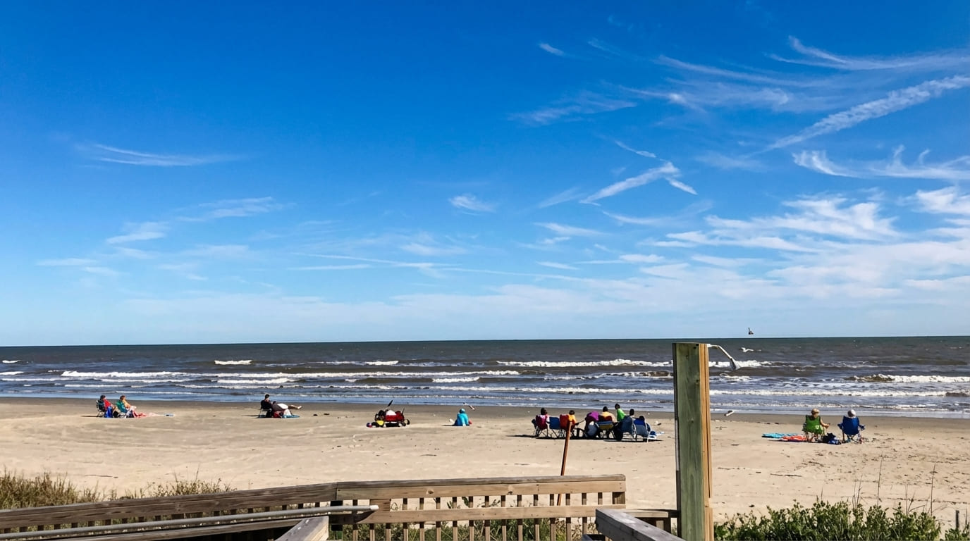 When you’re ready to wrap up, the Seawall and 61st Street corridor are worth the short drive. You’ll find plenty of dining options, waterfront spots to unwind, and a front-row seat to a Galveston sunset, a satisfying way to close out a West End beach day.