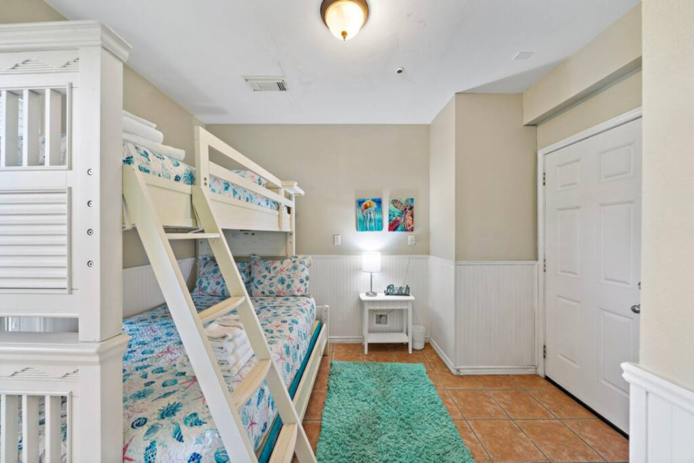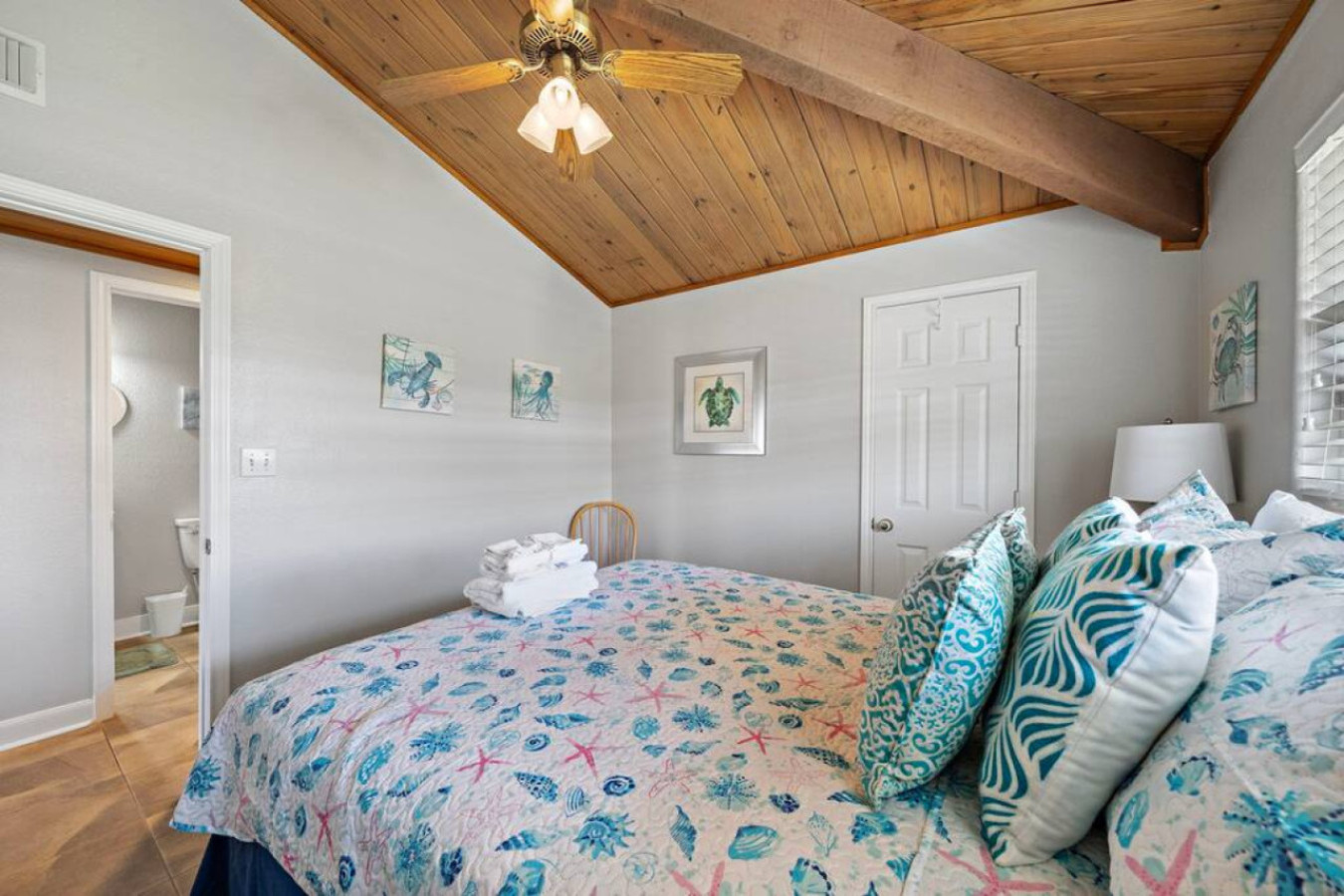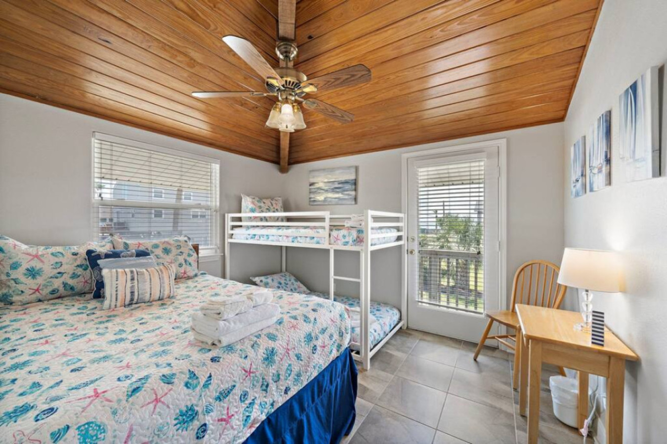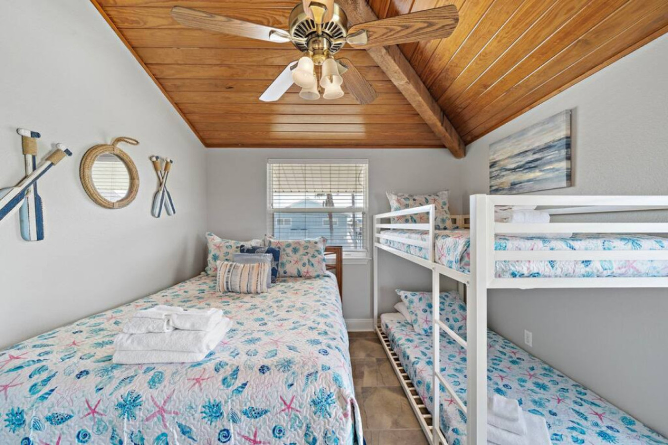With 4 bedrooms and a sleeper sofa, Anchor Down will comfortably fit your entire group. The primary room includes a king sized bed, while another provides a queen and a twin bunk, ideal for families. In a third bedroom, there is another queen sized bed and the fourth bedroom has a twin-over-full bunk bed. The queen sized sofa bed is located in the living room.