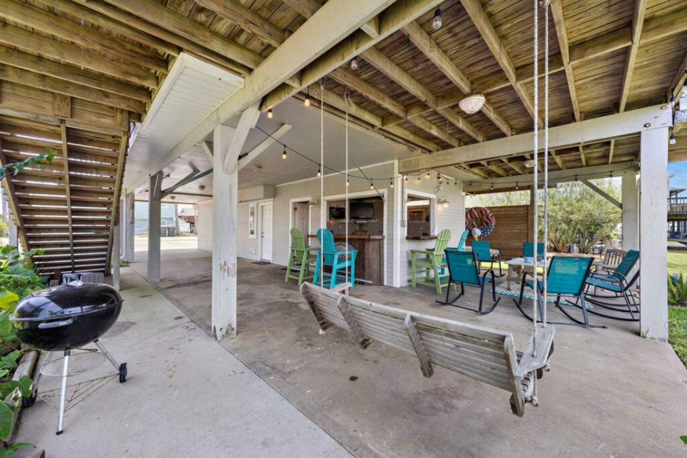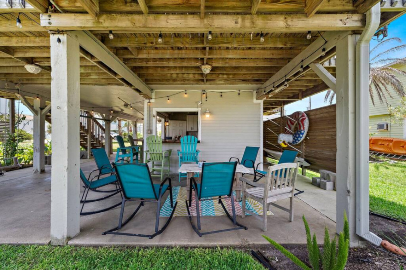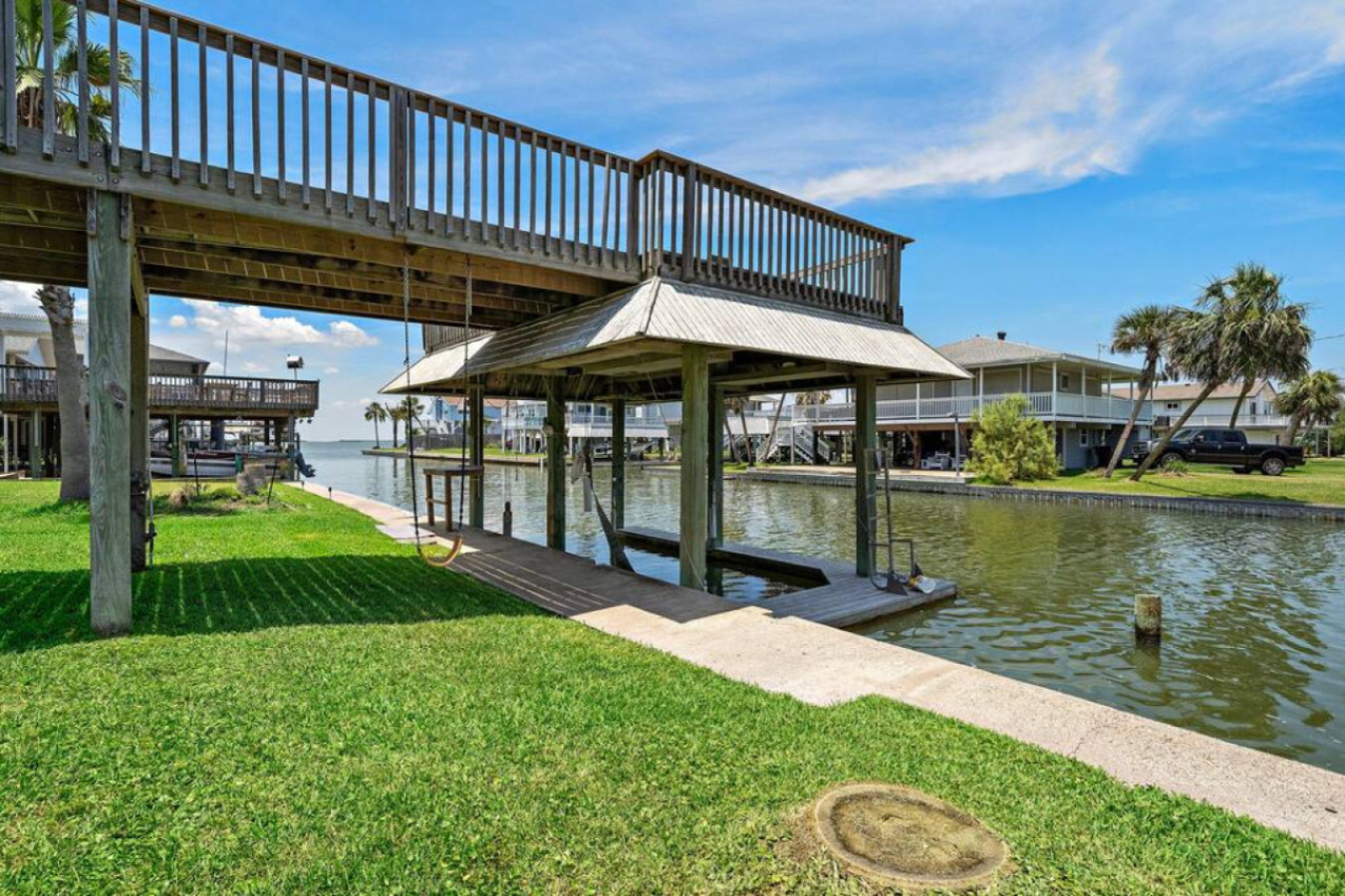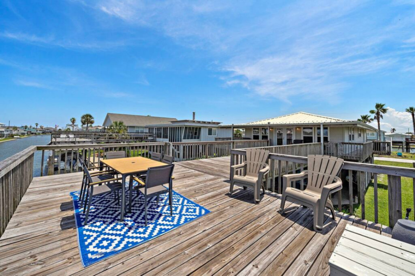 This charming canal home in Sea Isle puts you just a short 3-minute drive from the beach and offers the best of both worlds. Spend sunny days on the sand, then unwind on the large deck with stunning canal & bay views. The open-concept living area is perfect for families/friends to gather, while the tiki bar and outdoor shower add a touch of tropical fun. Explore Galveston’s charm, delicious eats, & nearby attractions – Anchor Down is your perfect island getaway!