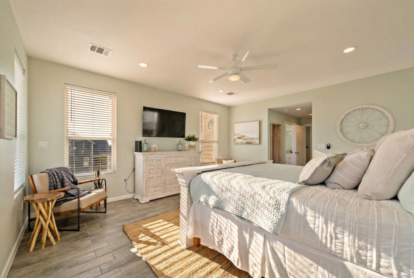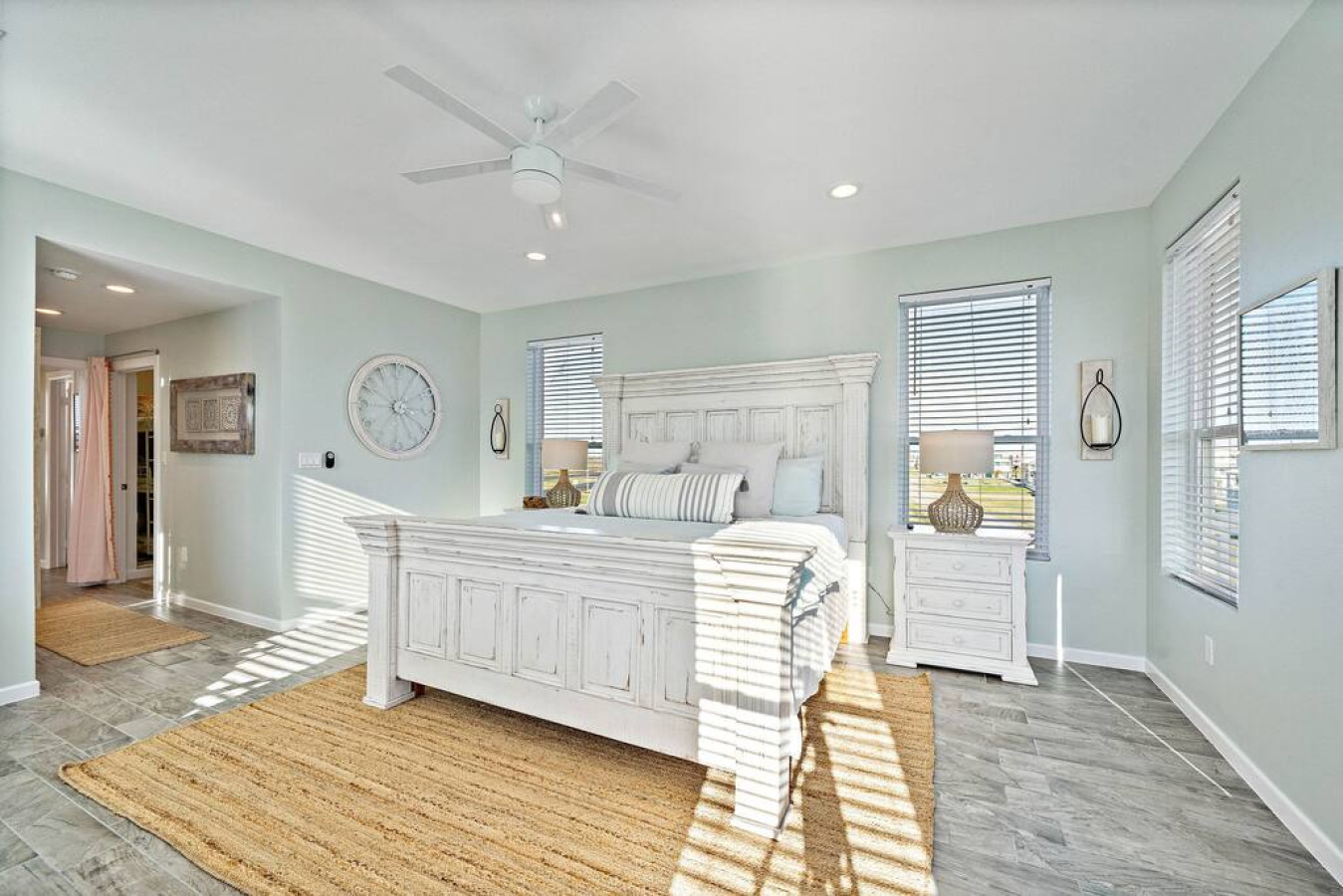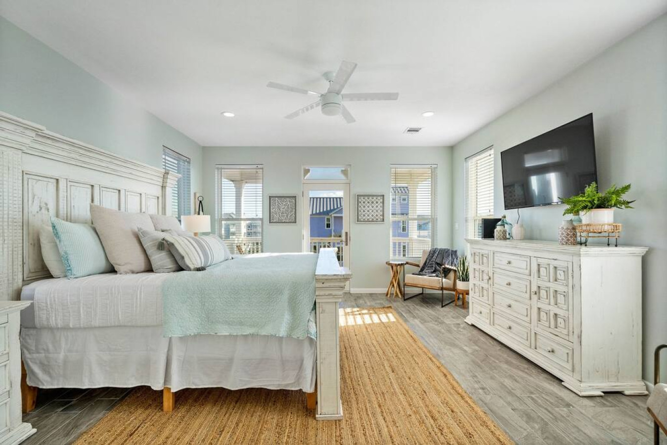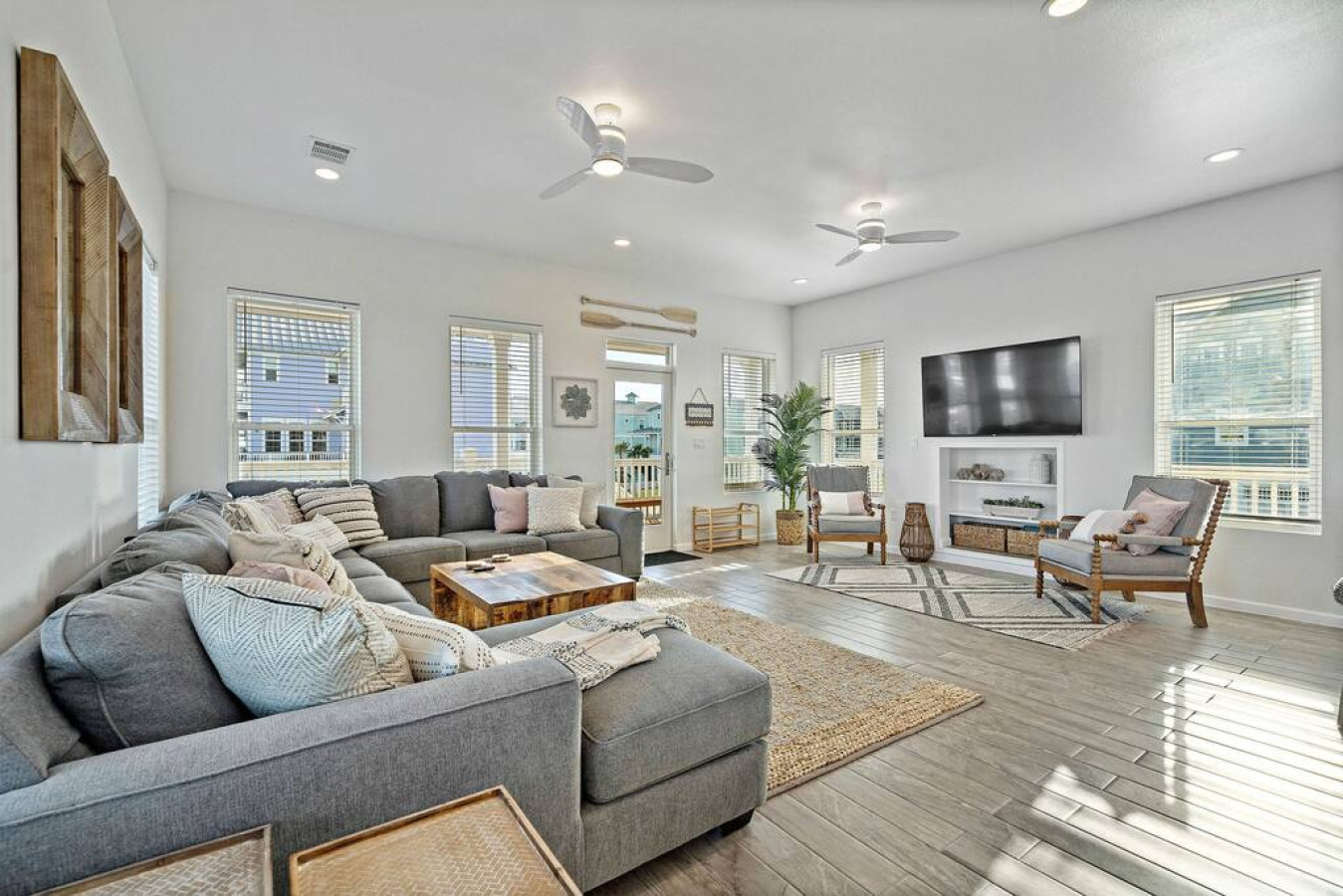 Effortlessly elegant, this three-story Beachside Village home has a chic, polished style and a picture-perfect, private location. With four breezy balconies, a barbeque area, an inviting open floor plan, a lush green lawn, and room for 18 people— this holiday home is also just steps away from the sandy beach. You’ll also be tucked safely into a private, gated community and be close to the Seawall and the Strand. Relax, recharge, and reconnect at this dazzling Texas Gulf Coast vacation home.