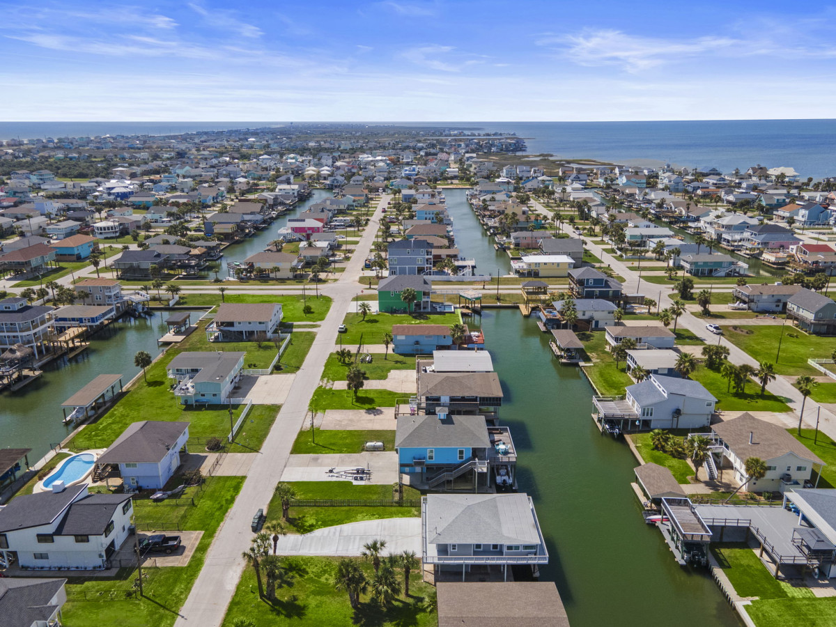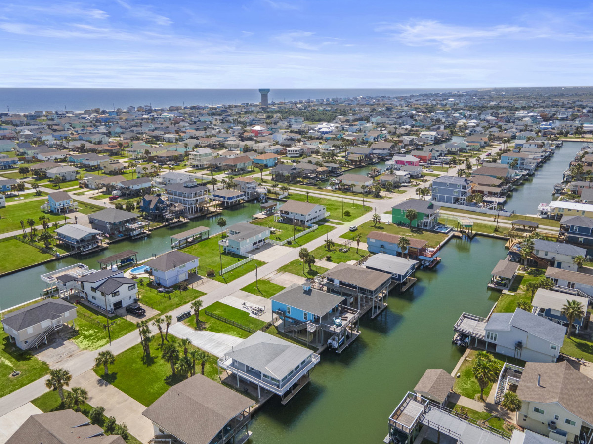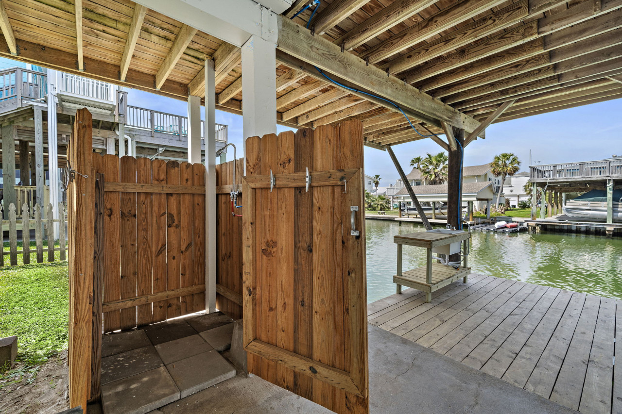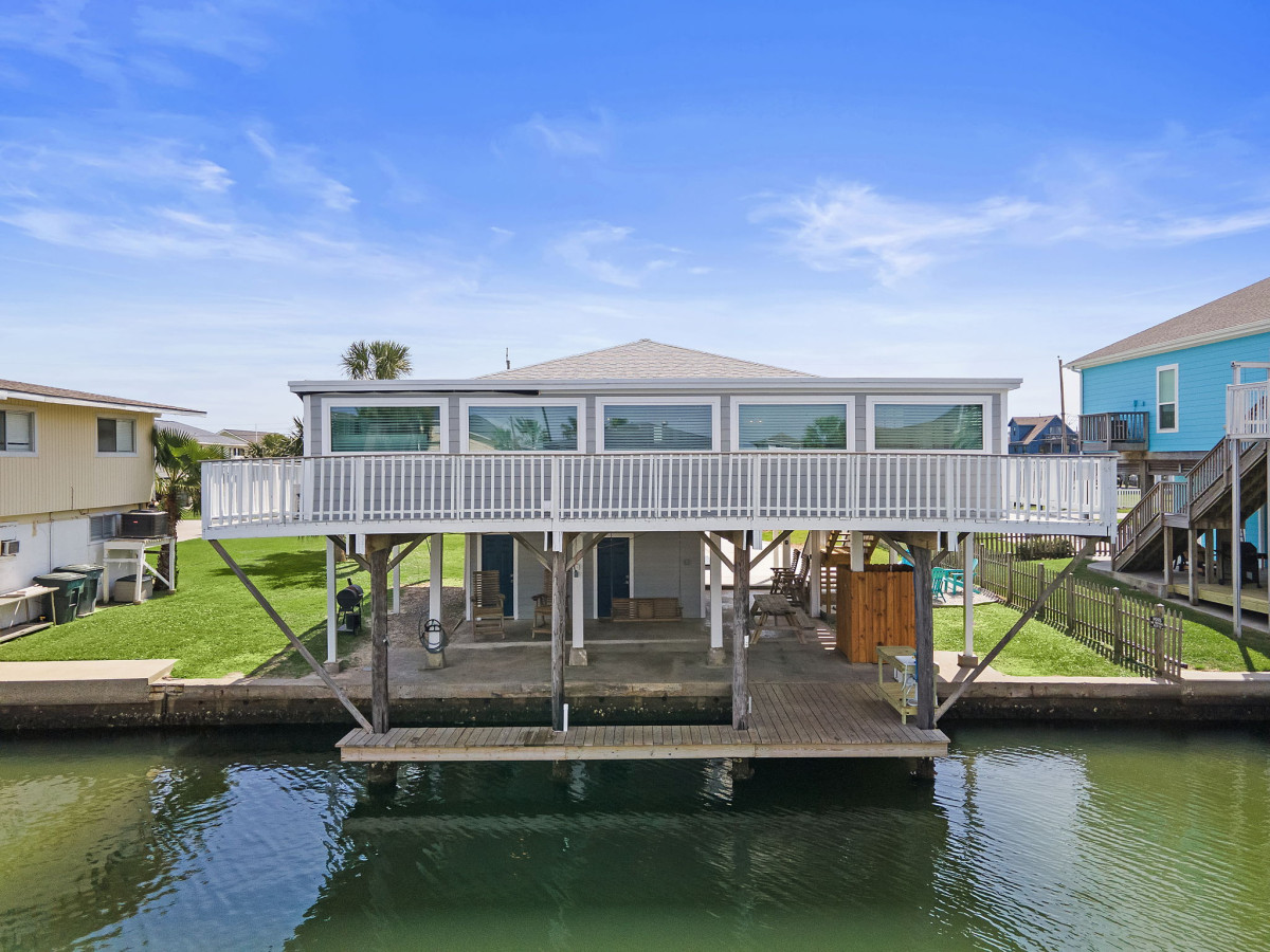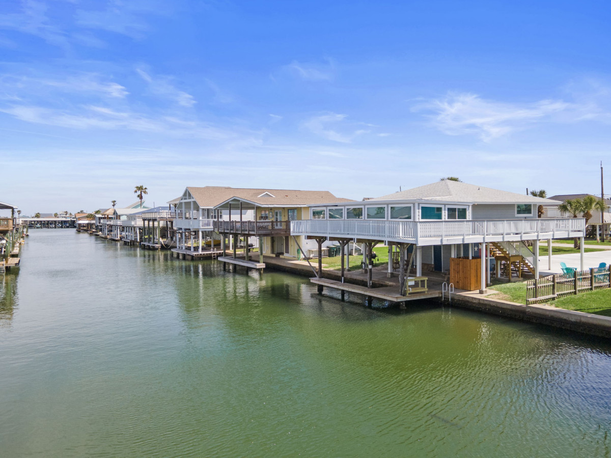 On the ground level, the covered barbeque area has a charcoal grill and outdoor shower. The covered boat slip is ideal for parking your boat or simply casting your fishing line off the dock. An additional fridge, sink and half bath are also conveniently located here. And when your crew is ready to explore, the dining, shopping, and entertainment of the Galveston Strand are a short drive away. The Sea Isle Beach access point and West End Marina and Restaurants are also close by. Gather up your whole group and let them know you’ve found your new home-away-from-home on the Texas coast.