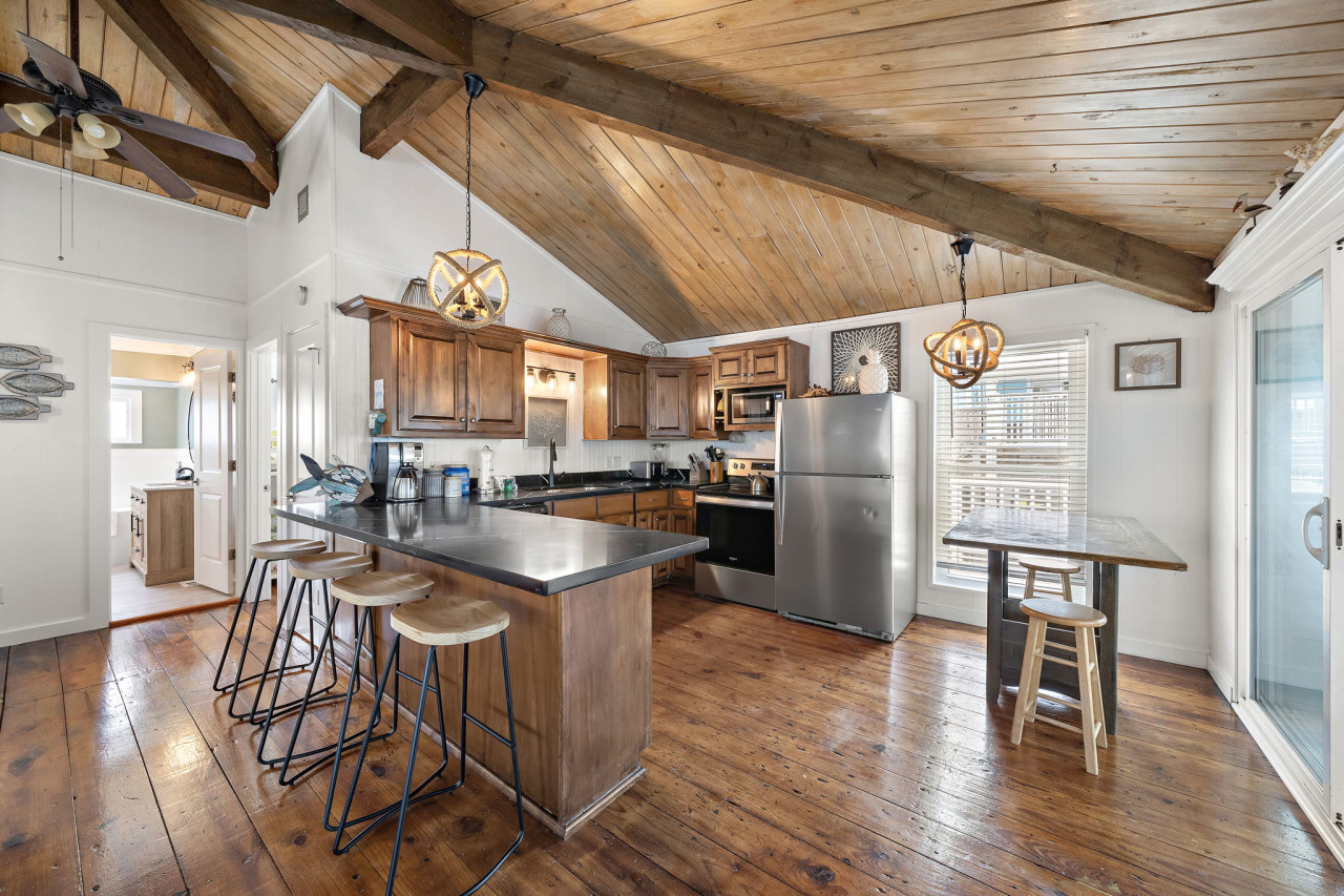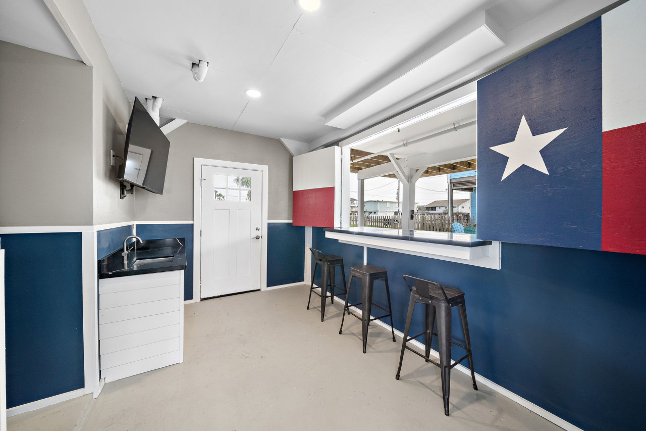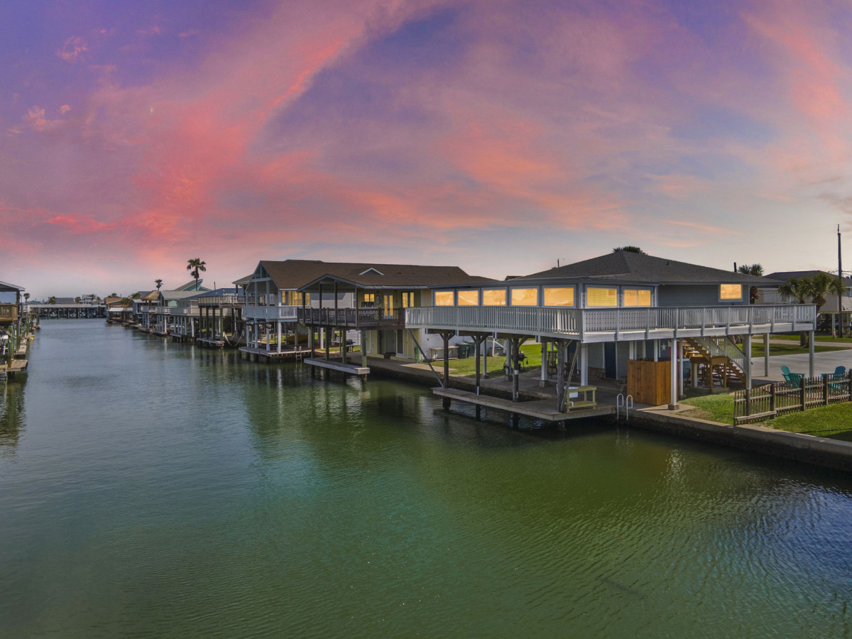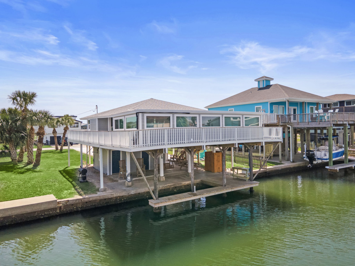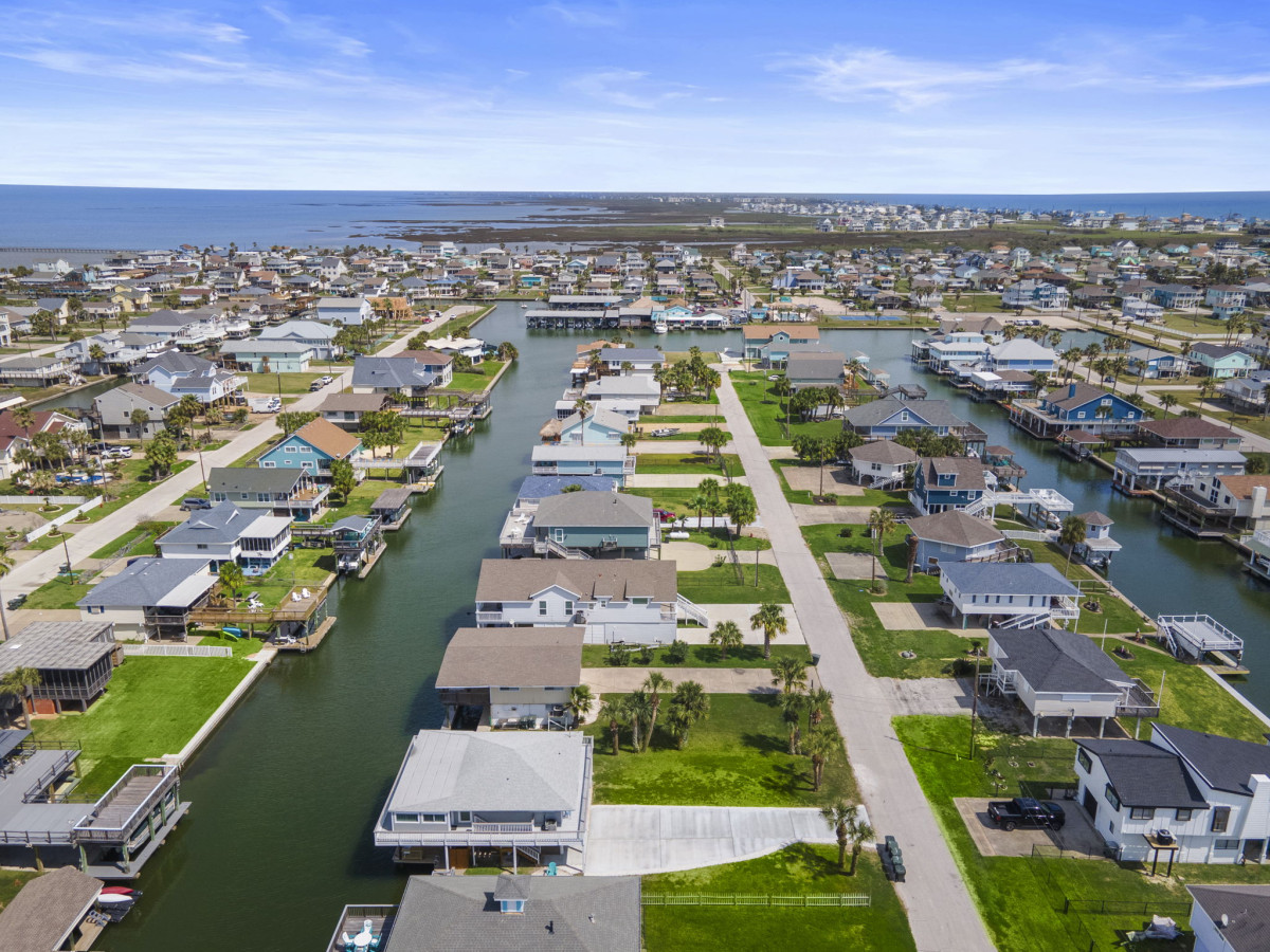 On the ground level, the covered barbeque area has a charcoal grill and outdoor shower. The covered boat slip is ideal for parking your boat or simply casting your fishing line off the dock. An additional fridge, sink and half bath are also conveniently located here. And when your crew is ready to explore, the dining, shopping, and entertainment of the Galveston Strand are a short drive away. The Sea Isle Beach access point and West End Marina and Restaurants are also close by. Gather up your whole group and let them know you’ve found your new home-away-from-home on the Texas coast.