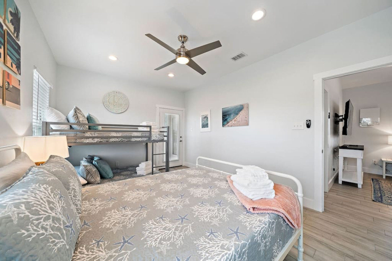 Cannonball Cove is your perfect San Leon getaway, offering ample space for families and groups to relax, play, and create lasting memories. This spacious 5-bedroom home boasts a comfortable layout perfect for both gathering and spreading out. Take a dip in the refreshing private pool, challenge your crew to a game night in the epic barn game room, or simply unwind and enjoy the coastal breeze under the Texas sky.
