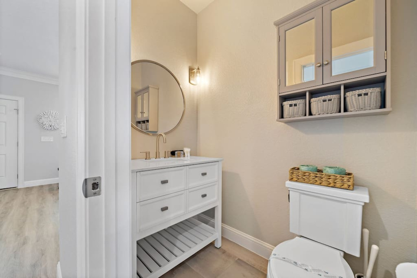 Step inside and discover a coastal-chic living space designed for comfort and togetherness. Cozy up for family movie nights, whip up delicious breakfasts in the fully-equipped kitchen, or gather around the spacious dining table for shared meals and laughter. A convenient half bath is also located on this floor for added convenience.