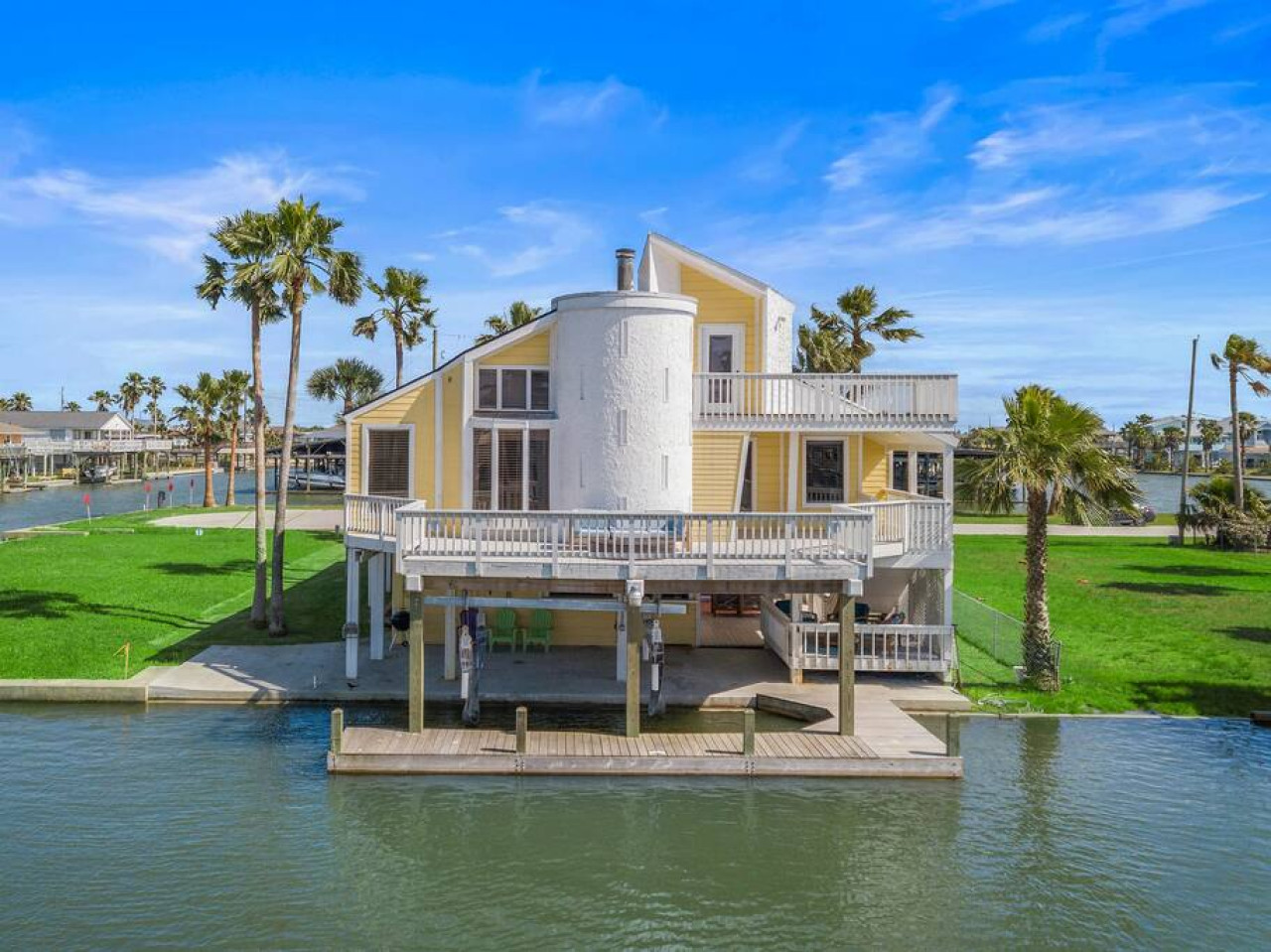 With four expansive decks and a private dock, the home offers stunning canal views from multiple vantage points. Enjoy peaceful mornings with a cup of coffee on the deck or host a relaxing evening barbecue with friends and family. Make your way down to the ground level and enjoy the Cowboy soaking pool. The quiet neighborhood provides a sense of serenity, while the beach access point is just a short 2-minute drive away. Explore the nearby Pleasure Pier, the Galveston Strand, or grab a bite at the West End Marina Restaurant.