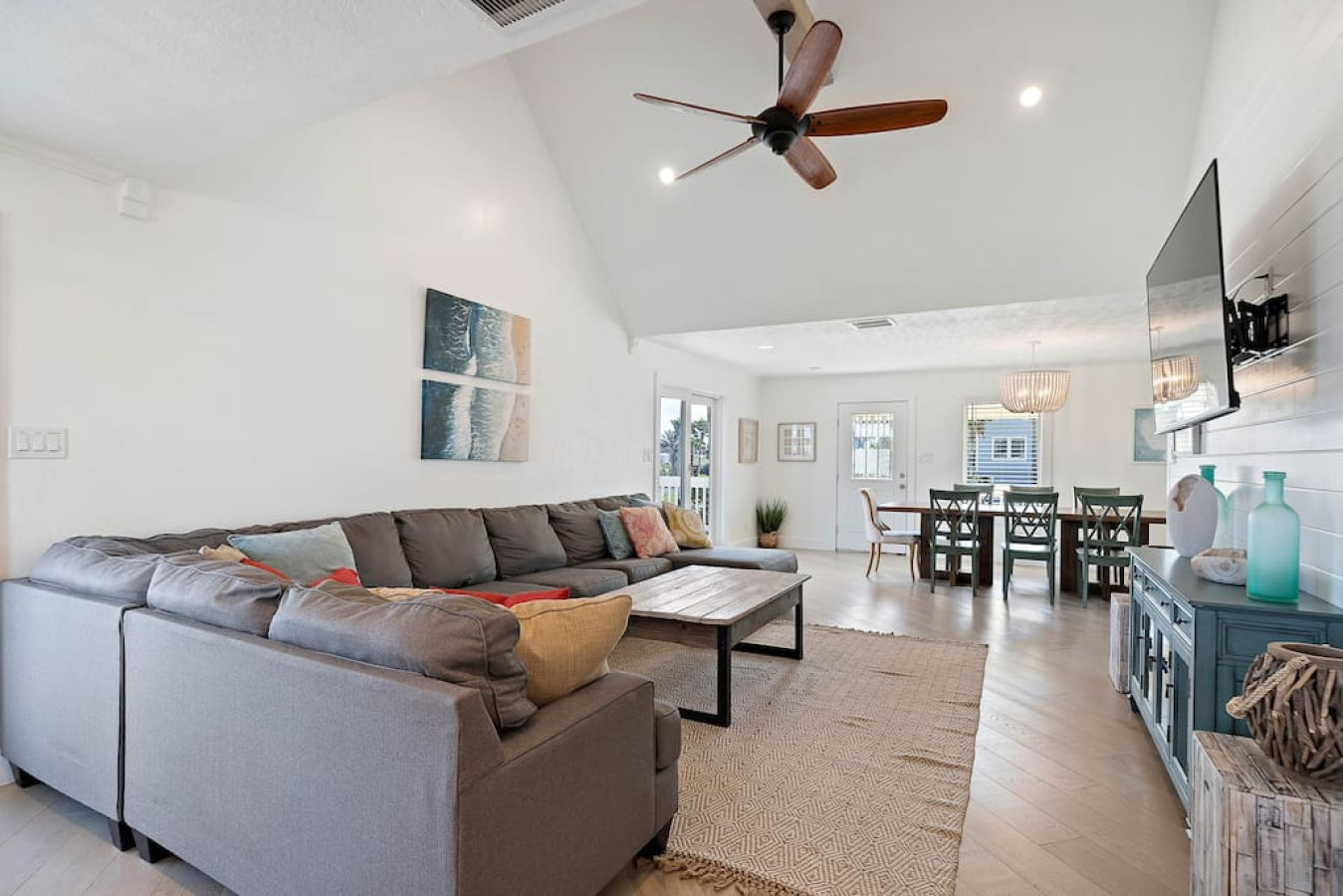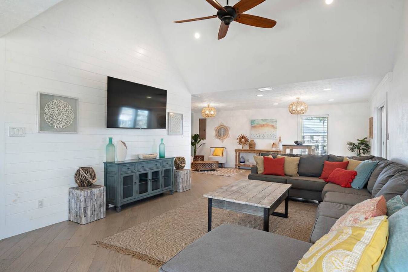 Relax on the canal, unwind by the beach! This spacious canal-front home boasts 6 bedrooms and 4 bathrooms, ideal for large groups. Spend sunny days at the beach, just a 2-minute drive away, then return for afternoons on one of the four decks, enjoying the canal views. Gone Coastal also features an epic game room for friendly competition, double the culinary fun with two kitchens, and a luxurious penthouse primary suite for ultimate relaxation. Come create unforgettable memories at Gone Coastal!