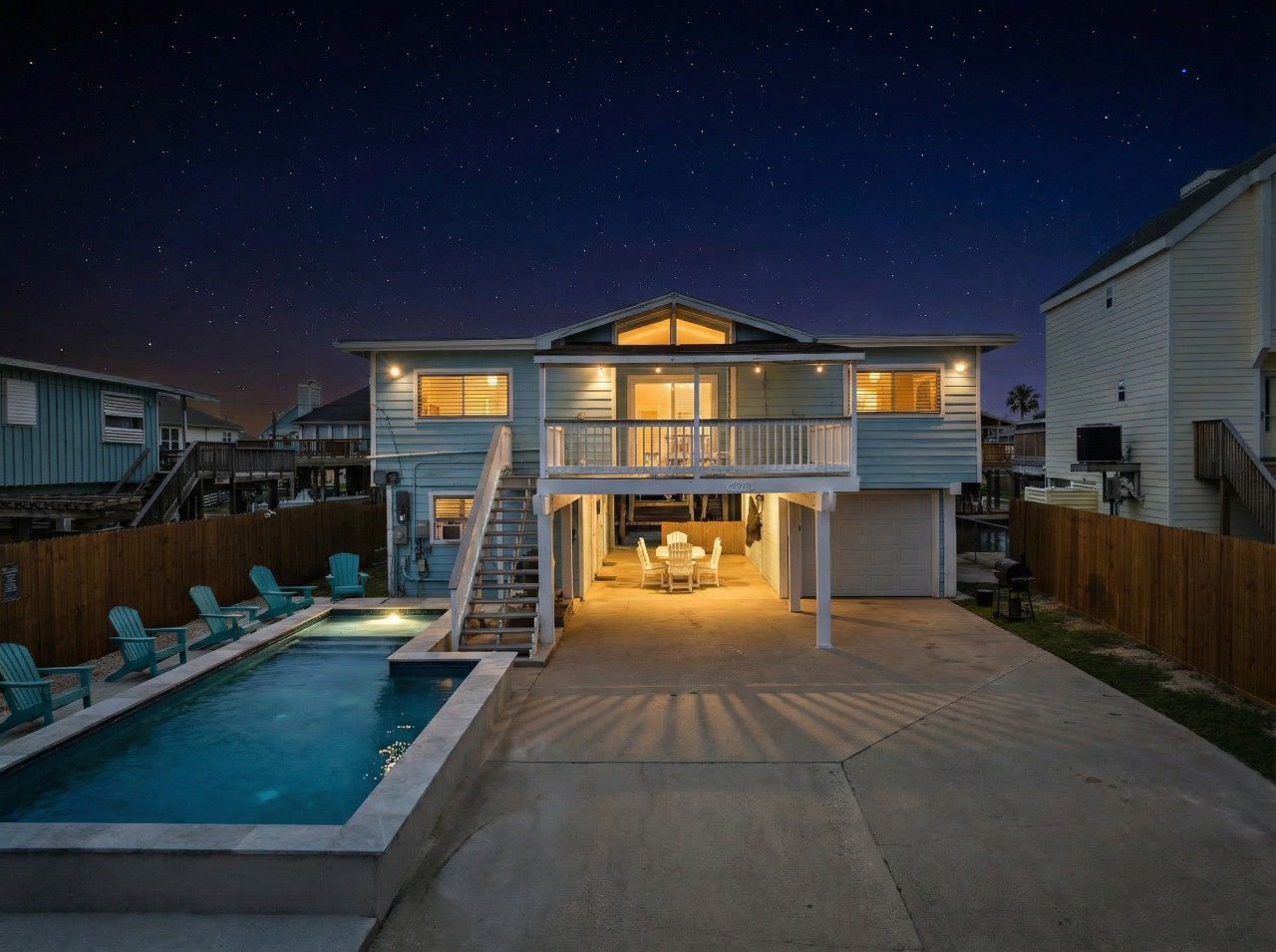 “Our stay at the Canal House was perfect for our family of 10. The home was spacious and welcoming, easily accommodating both our family and our pets’ outdoor needs. The pool was amazing—clean, refreshing, and a favorite gathering spot.We loved the two covered porches—one in the front and one in the back—and the deck had plenty of seating for everyone to relax and enjoy the breeze.Communication with management was excellent. They responded promptly to all inquiries before and during our stay, which gave us peace of mind. I particularly appreciated their thoughtful response to my concerns about past reviews mentioning refrigerator issues. We brought extra coolers just in case, but there were zero problems. In fact, the additional small fridge was a great bonus—we used it for drinks.One important note for future guests: during our stay, a double high tide—combined with a strong north wind—caused the water to rise 8 to 10 inches over the lower deck. Thankfully, we had only left chairs and a few fishing rods out, none of which were swept away. It didn’t rain, so this was purely a tidal event. It would be helpful for guests to be made aware of the potential for rising water in the Jamaica Beach area, especially during certain weather conditions.The Canal House exceeded our expectations in every way. We will definitely return. ”
