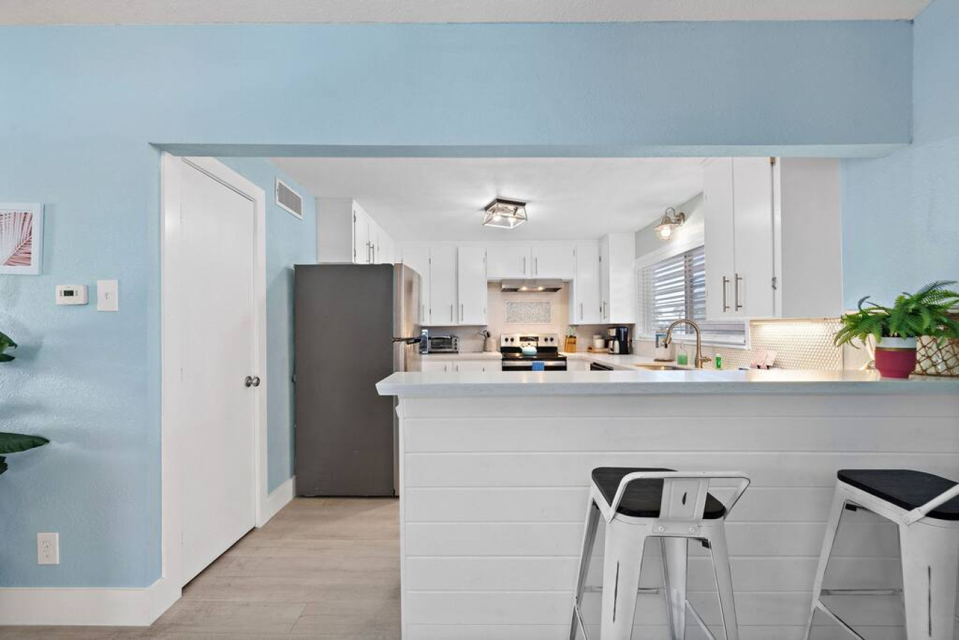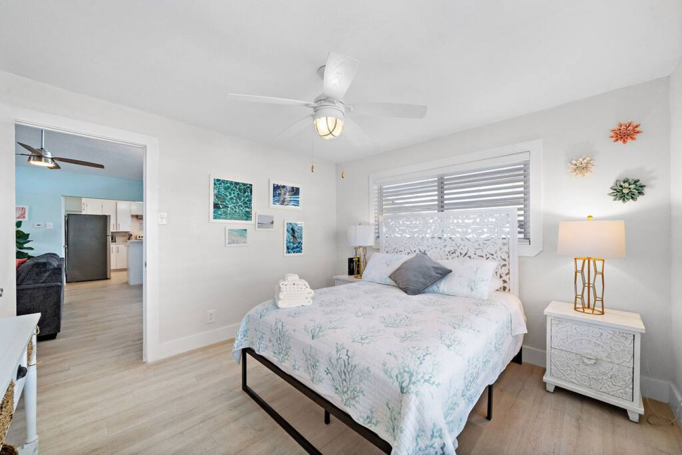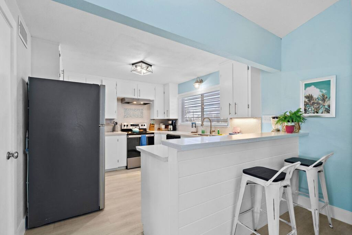 Around the corner, a bright kitchen with top-notch appliances and ample counter space awaits your culinary creations. Tiered bar seating makes entertaining easy. Sliding glass doors lead to a lovely dining area overlooking the peaceful canal, where you can create lasting memories over shared meals.