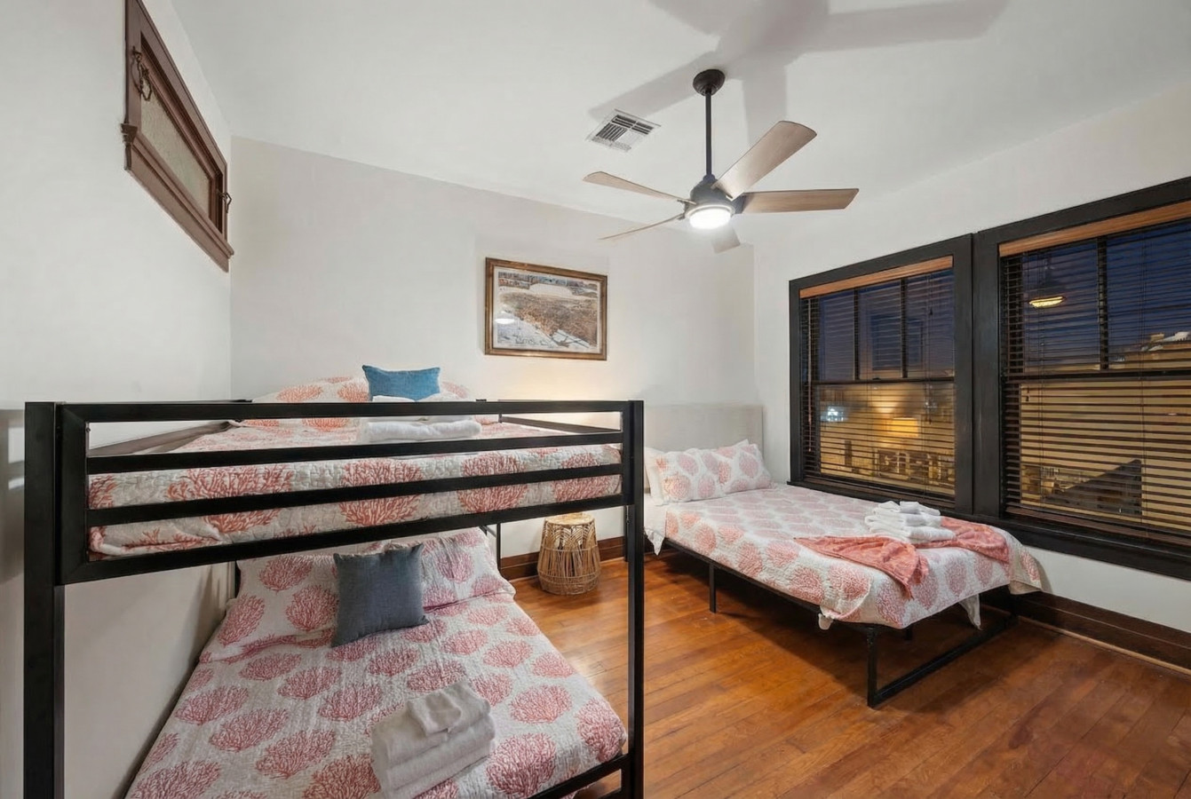 Experience the charm of Downtown Galveston in this stunning two-bedroom, two-bathroom historic loft, just steps away from all of the best restaurants, coffee shops, and entertainment that Galveston has to offer! The master bedroom features a king size bed with en suite bathroom, and the second bedroom has a queen size bed with a full over full bunk bed. With its prime location, modern amenities, and stylish decor, you’re sure to have an unforgettable stay at League Lofts 303. THERE IS NO ELEVATOR IN THIS BUILDING. IT IS ALL ONLY STAIRS!