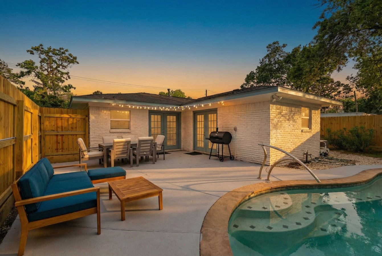 Just a leisurely stroll from the Kemah Boardwalk, your family (and pups!) will adore this cute one-level bungalow with a heated pool and huge, fully fenced backyard! Thoughtfully designed and furnished for families in mind, this Kemah gem guarantees an enjoyable time for everyone in your crew. With a large pool, outdoor fire pit, charcoal grill, ample outdoor seating, and three cozy bedrooms, It’s the ideal haven for relaxing get-togethers, poolside fun, or embarking on Kemah Boardwalk adventures.