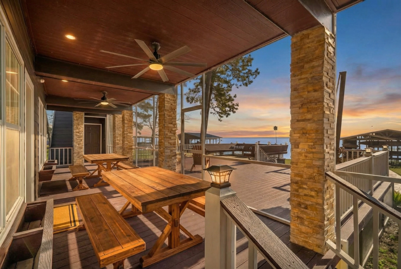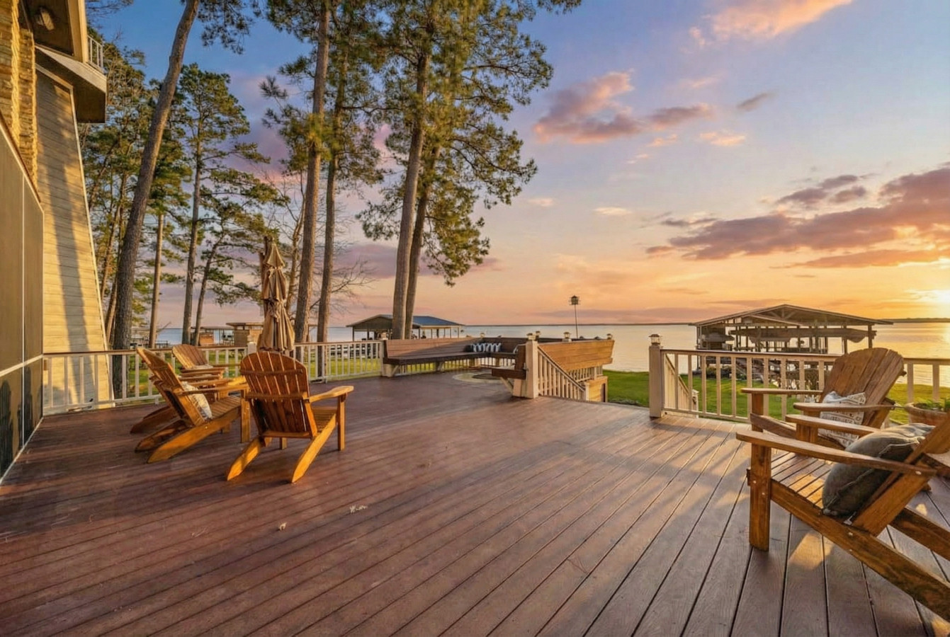 Step outside and embrace the Texas sunshine! A screened-in porch with multiple picnic tables offers a delightful spot for al fresco dining, no matter the weather. Relax on the expansive main porch with comfortable seating and a built-in fire pit, all overlooking the serene lake – the perfect place to unwind and reconnect with loved ones. Take a refreshing dip in the sparkling pool, then head down to your private pier and boat dock for a day of fun on the water. Lake Livingston awaits! No need to look further, I promise you this is the place!!
