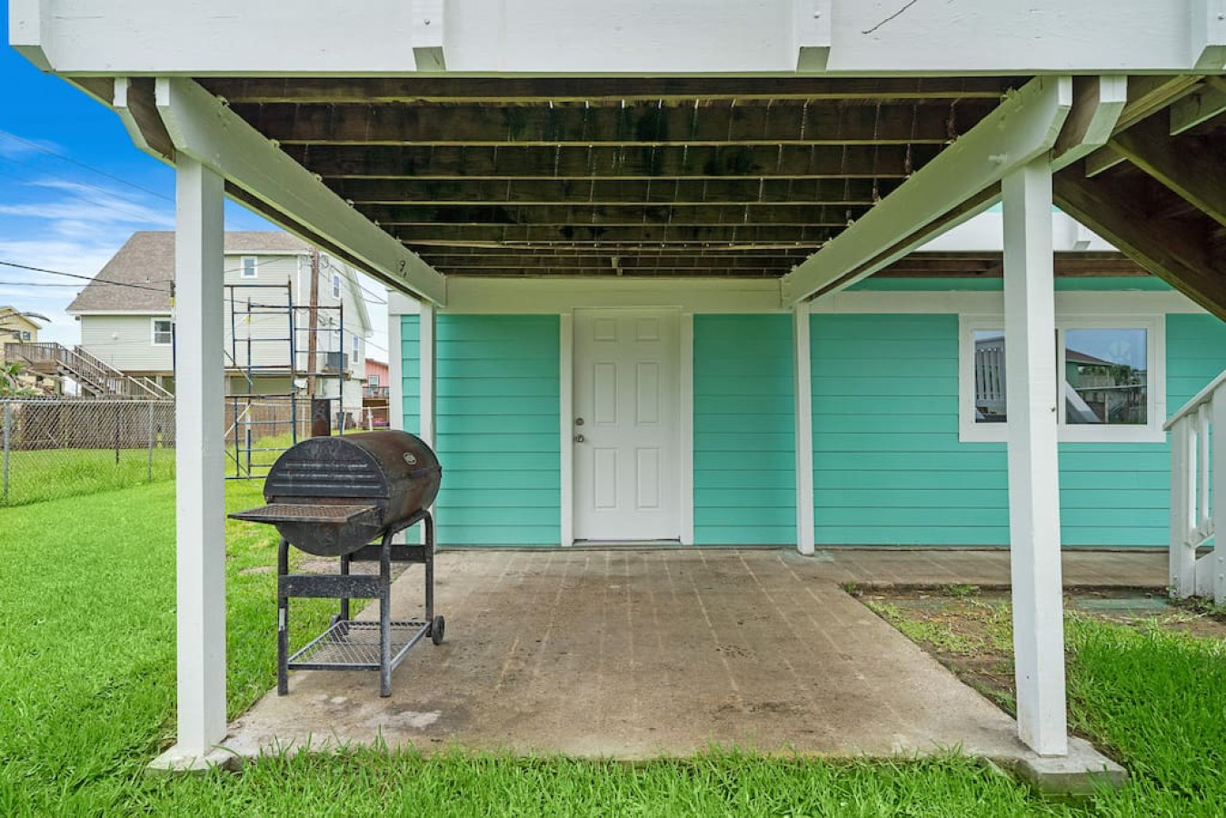 This charming 4-bedroom, 2-bathroom house is just a 2-minute drive to the closest beach access point. After a day of sandy fun, unwind on the massive front porch which has a dining table for evenings under the stars. Additional deck chairs offer cozy nooks for reading or soaking up the sun. Feeling like a barbecue? Fire up the grill and cook in the fenced backyard. Then end the day with a refreshing dip in the pool when the sun gets too hot. Memories are waiting to be made! STR25-000149