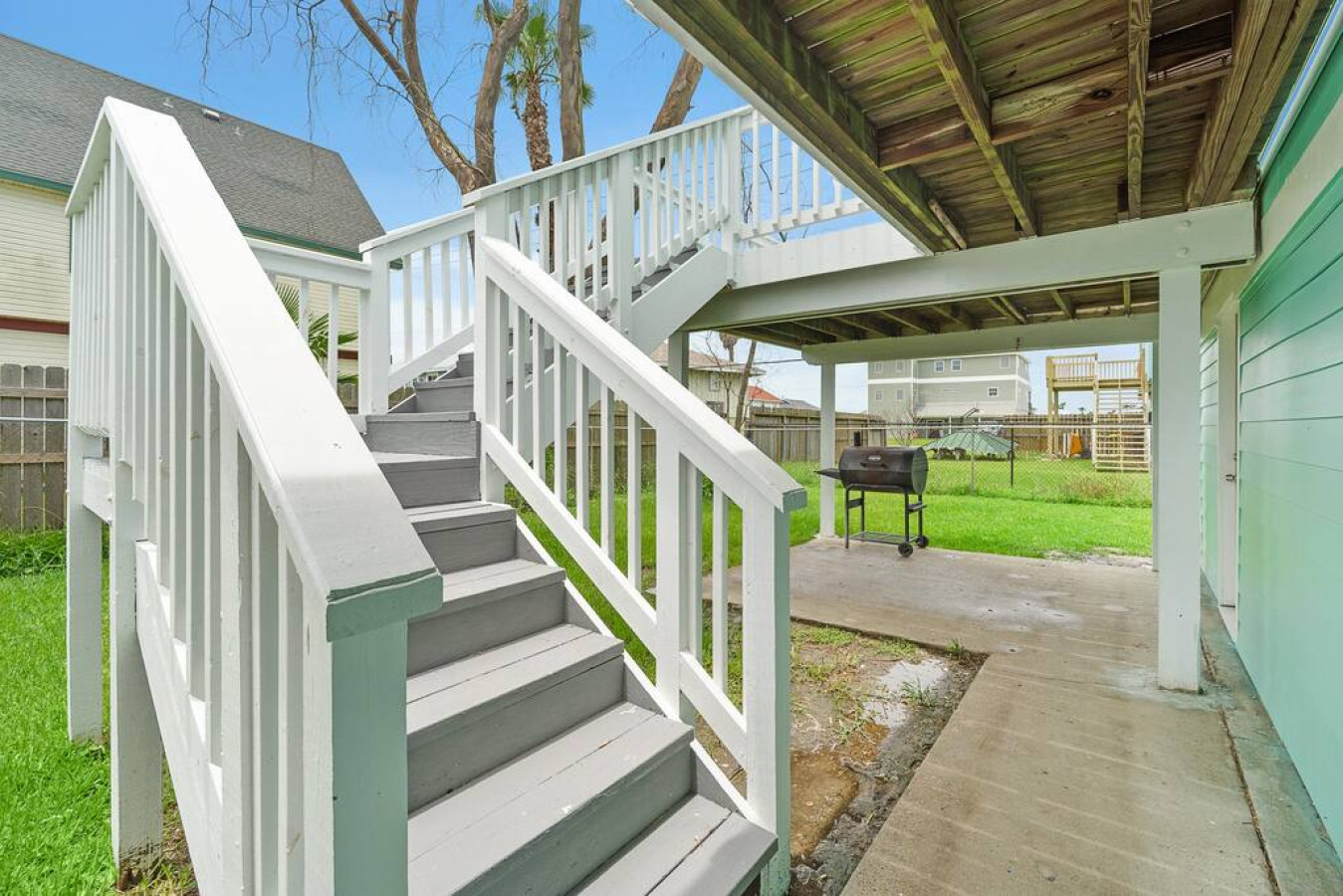 “We loved the balcony upstairs! Right down the street from the beach. Beautiful neighborhood! Spiral staircase was very narrow and hard to get up but we used the outside stairs and was fine! Loved this house and look forward to our next trip to Jamaica Beach!”