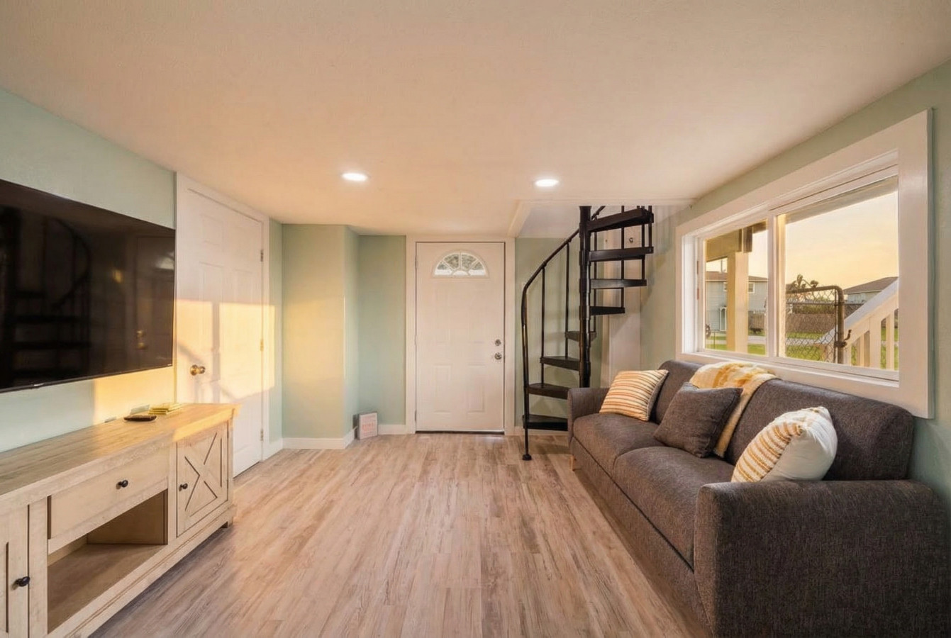 “Beautiful home. Definitely a house for kids but staircase isn’t really safe. Had several falls on the metal staircase due to the narrowness. Children enjoyed stay minus the falls”