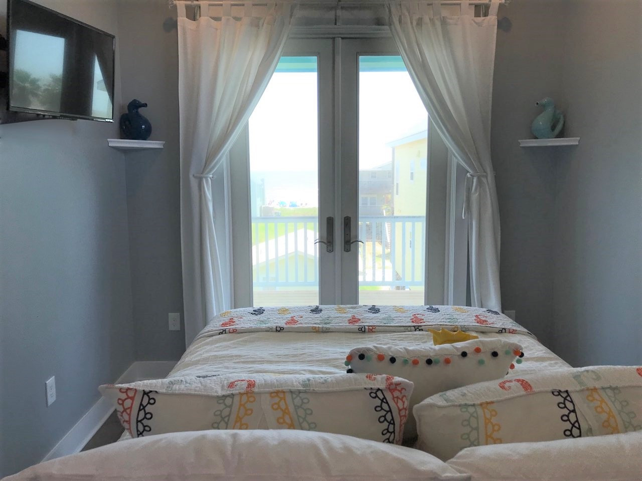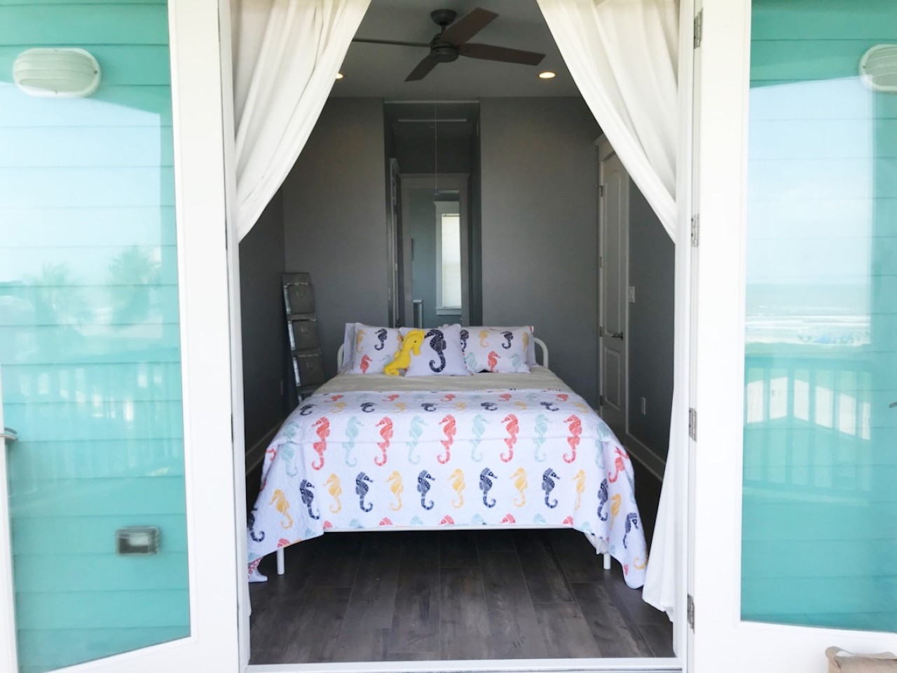 Step inside Seahorse Inn and feel the stress melt away. The entire home is a convenient with open-concept kitchen and two living rooms. After a day of exploring Galveston, sink into the plush couch and share stories about your adventures. The fully-equipped kitchen allows you to prepare delicious meals, while the washer and dryer make packing light a breeze. On the first level you will find the Master suite with a luxurious king-sized bed and en suite bathroom. Pass by the kitchen to head upstairs where you will find two more bedrooms. The first features a queen bed with en suite bathroom while the second features two twin beds. The common space boasts a second living space and two additional twin beds. It is certainly a fun and cozy space for all to enjoy