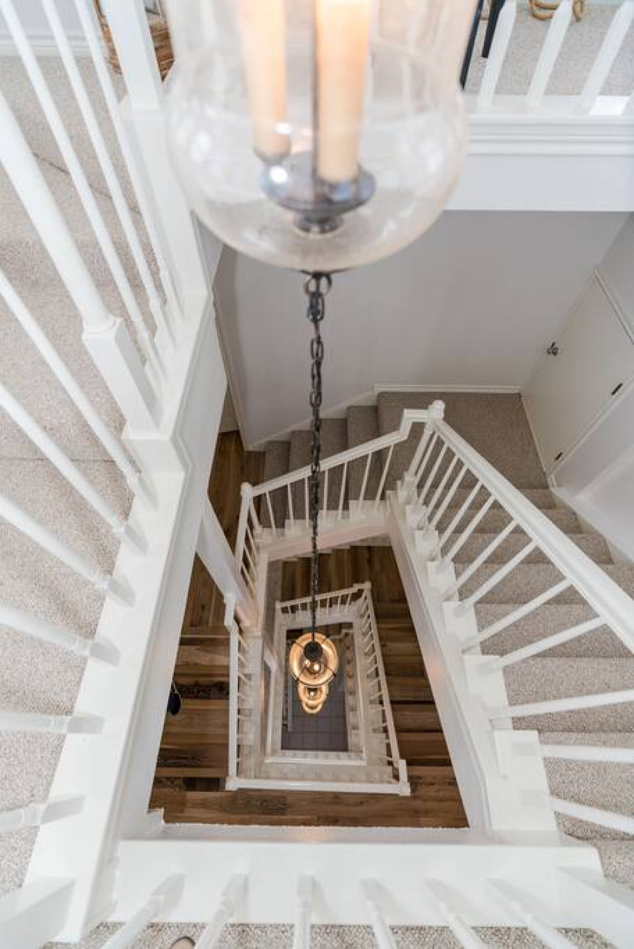 The main master suite occupies the entire third level and is ultra-private. Painted a soothing sea blue with white trim, the master suite has a sumptuous king-size bed and french doors that open wide to sweeping views of the bay from your private balcony. The giant master bathroom has two walk-in closets, a double vanity, a separate tub, and a step-in shower. Climb up the stairs to the fourth-floor lookout for a birds-eye view of the coast.