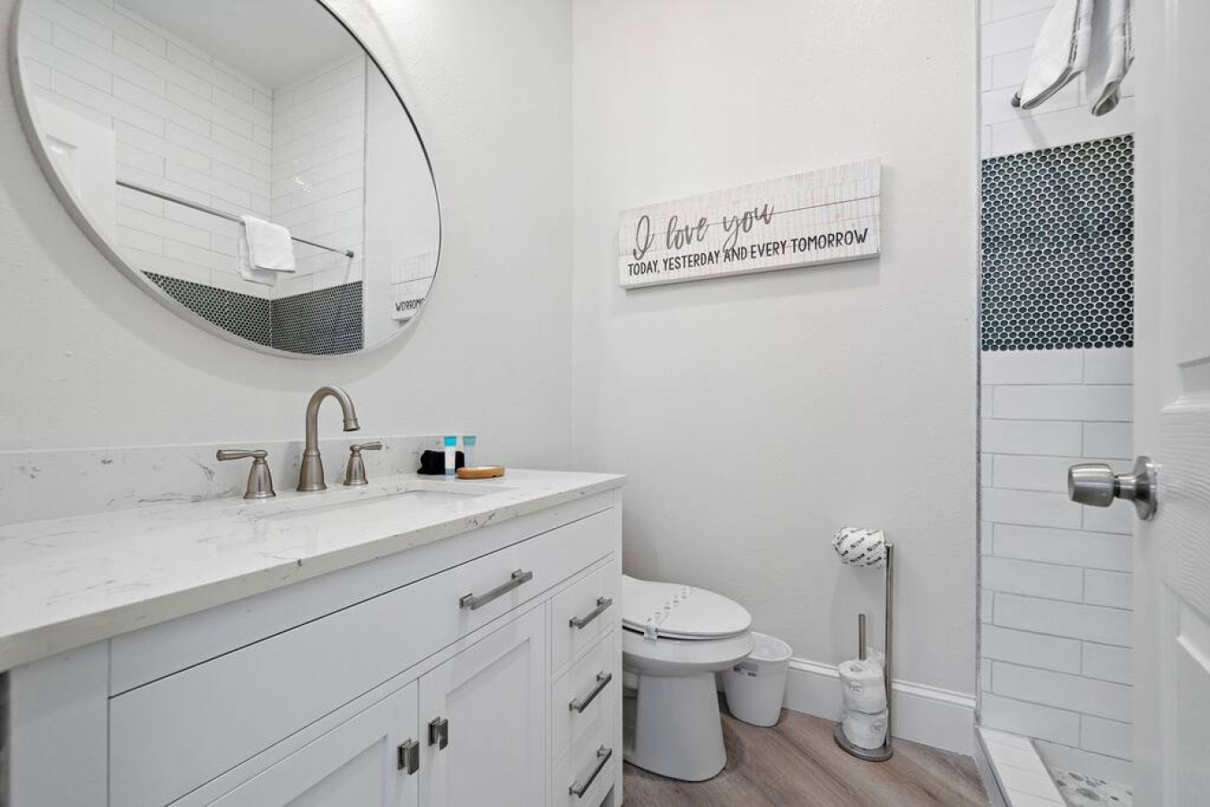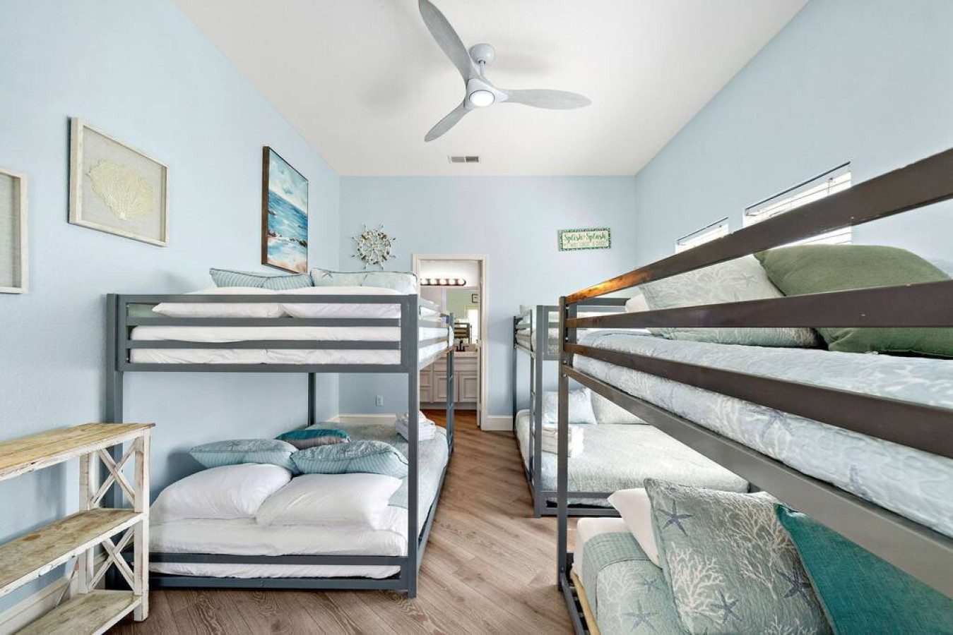 The first bedroom is down the hallway and is a secondary master suite— complete with a king-size bed and a private, ensuite bathroom. Two more bedrooms are on the main level, one bunk room that is always a big hit with the kids, and another room with a queen bed and full over full bunk bed. A full bathroom with a tub/shower combo can be accessed from the hallway.