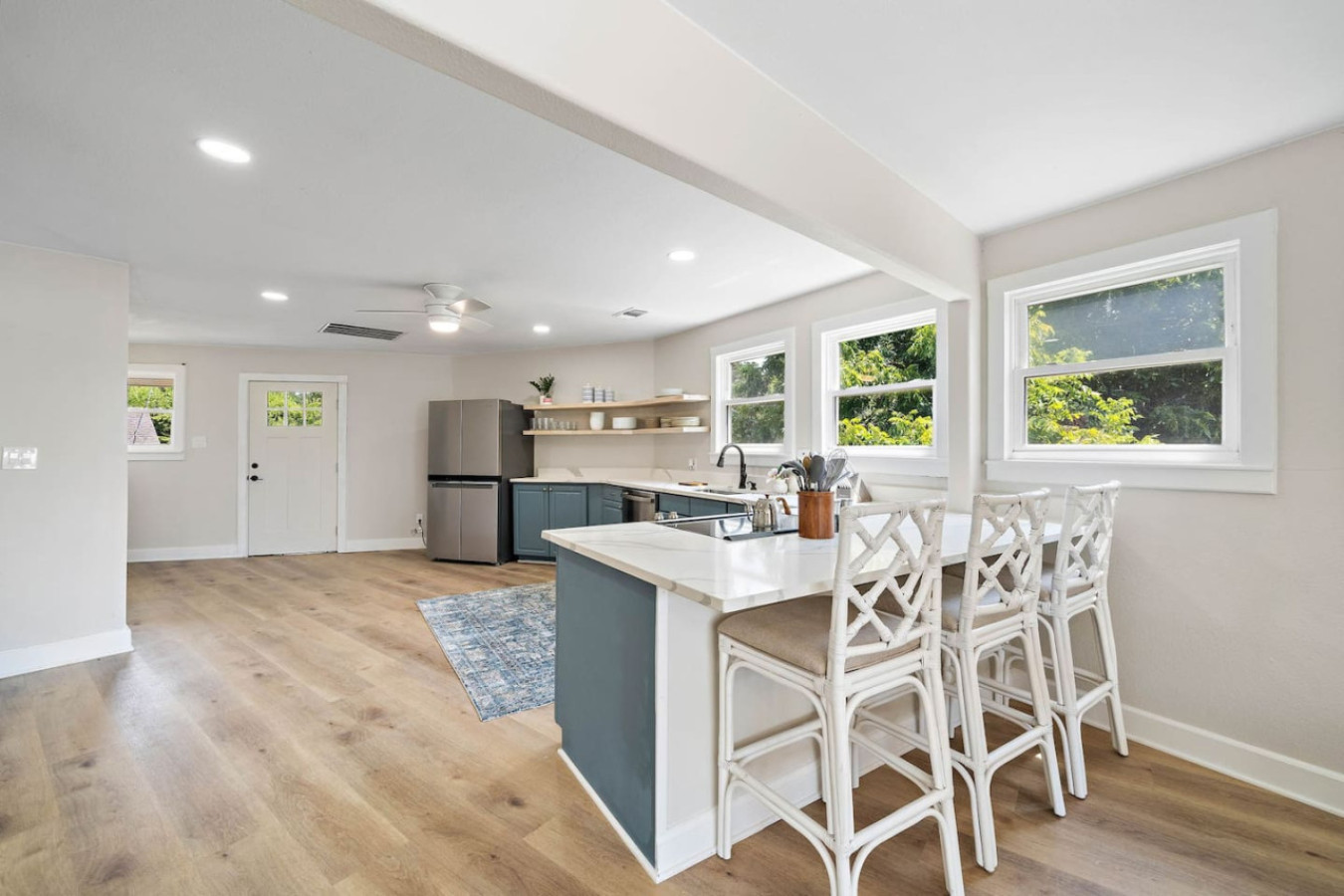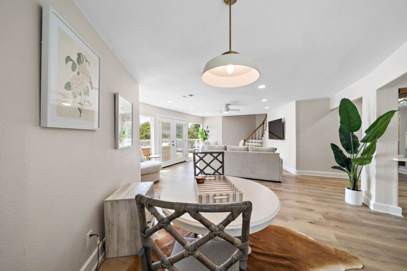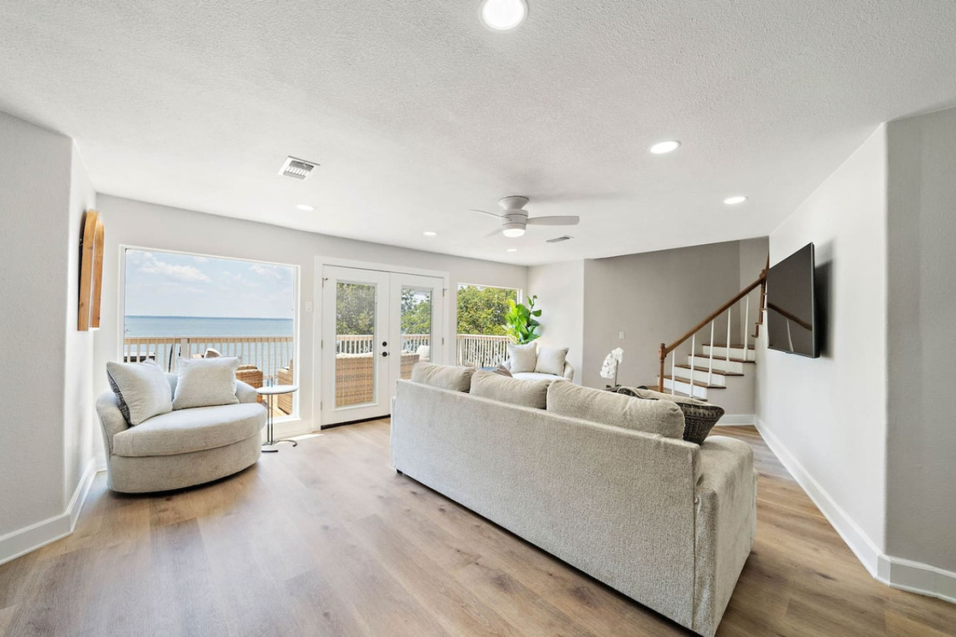 “This could be an amazing property! There are so many great things...great lake, pool, quiet neighborhood and comfortable beds. But there are even more negatives. There was no key in the lockbox when we arrived. The railing up to the house is loose. All of the living room/kitchen chairs are covered in stains as is the ceiling. All patio furniture is broken/unusable. The flooring by the patio doors is coming apart. There's a hole in the wall of the primary bedroom. There is no seating by pool and the Adirondack chairs are all broken. The pier has lots of broken boards and nails sticking out! I had specifically reached out about the pier before we booked. I noticed other reviews mentioned the same concerns. I was assured that all repairs were made-total lie. I would NOT recommend anyone stay here until you are shown proof that all of these issues are dealt with.”