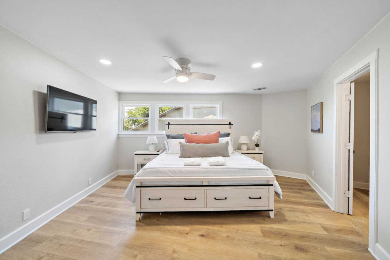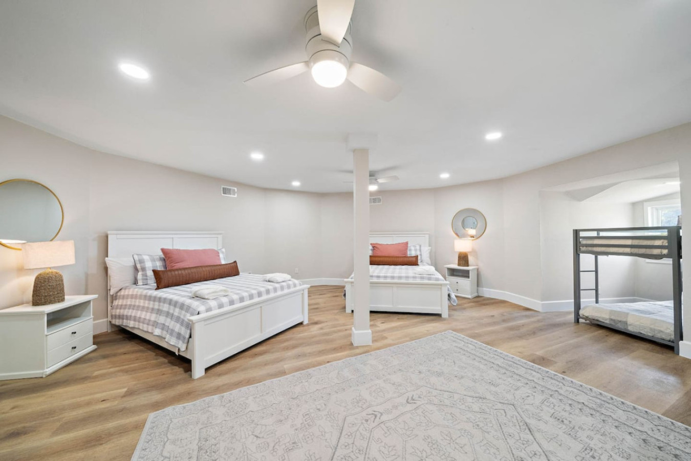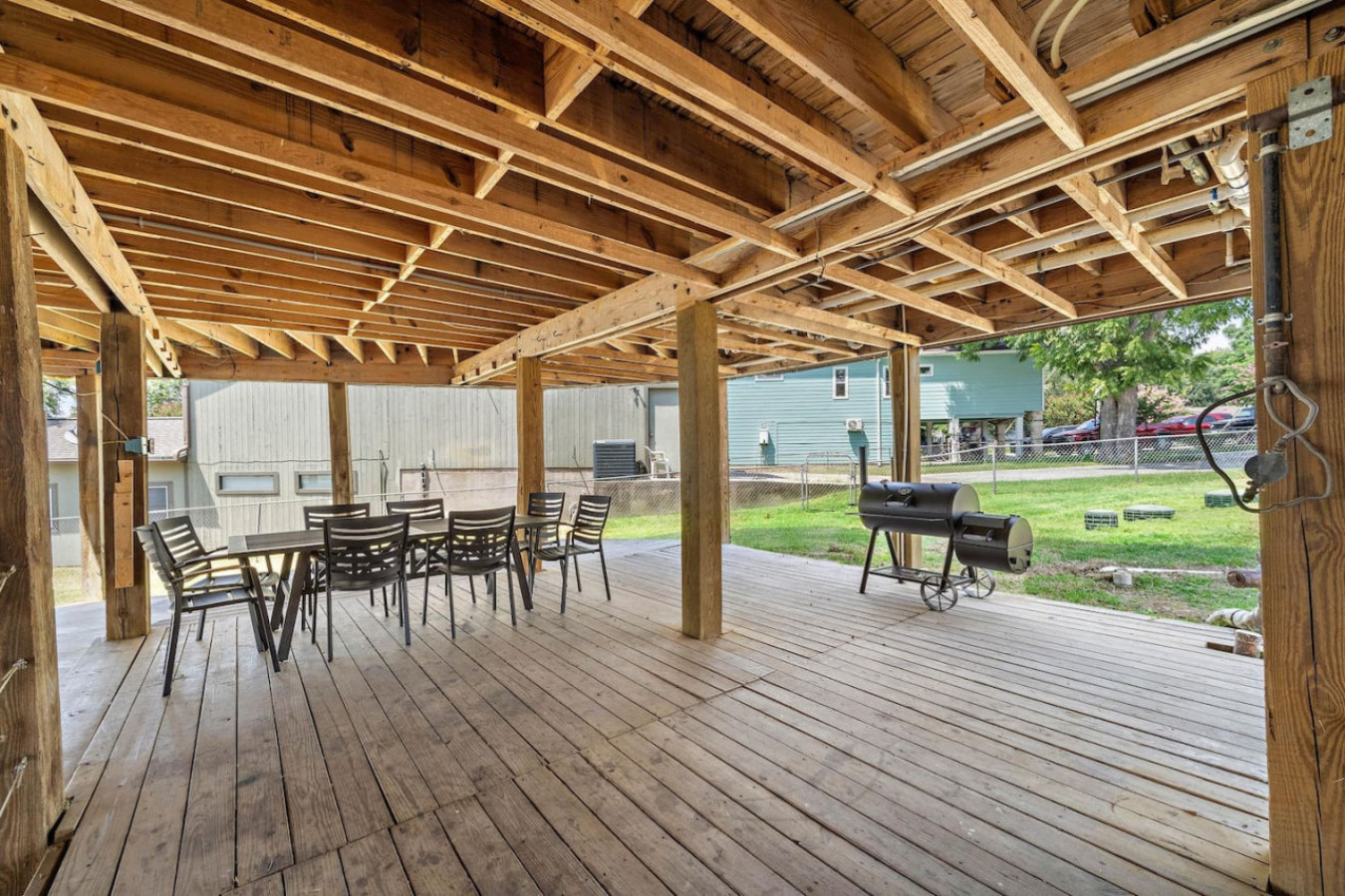 “Our family (15 of us) traveled to Onalaska and had the best time. The location of this home is perfect. The house is set up wonderfully for large groups. Many great restaurants, activities, and stores nearby. The beds were super comfy - I actually woke up without back pain. Safety was great off the back deck, stairs had a latched gate. Stairs in the house did have a door so you could close it to keep kids away but the doorknob was broken, we had to leave a chair in front of it. An additional gate available to use would be helpful. Kitchen was fully stocked as far as dishware, pots and pans - actually almost TOO much. Maintenance of the house is needed for a few things such as a few outlets not working, living room fans we couldn't reach the string to turn on, older carpet, more thorough cleaning needed, etc. The plumbing also needs some work - the kitchen sink, the big bathtub - just maintenance expected with the age of the home. Overall, we LOVED it! Beautiful property!”