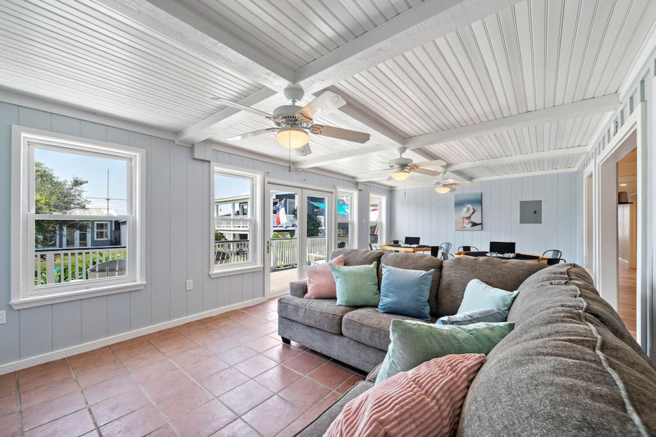 Imagine spending your vacation in a spacious Galveston retreat designed for relaxation and fun! The Good Life boasts a main house with 7 bedrooms, 4.5 bathrooms, and a separate guest house with 1 bedroom and a full kitchen, perfect for families and groups of all sizes.