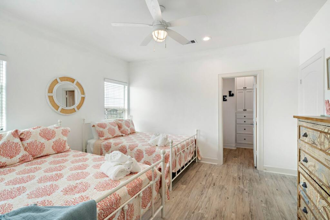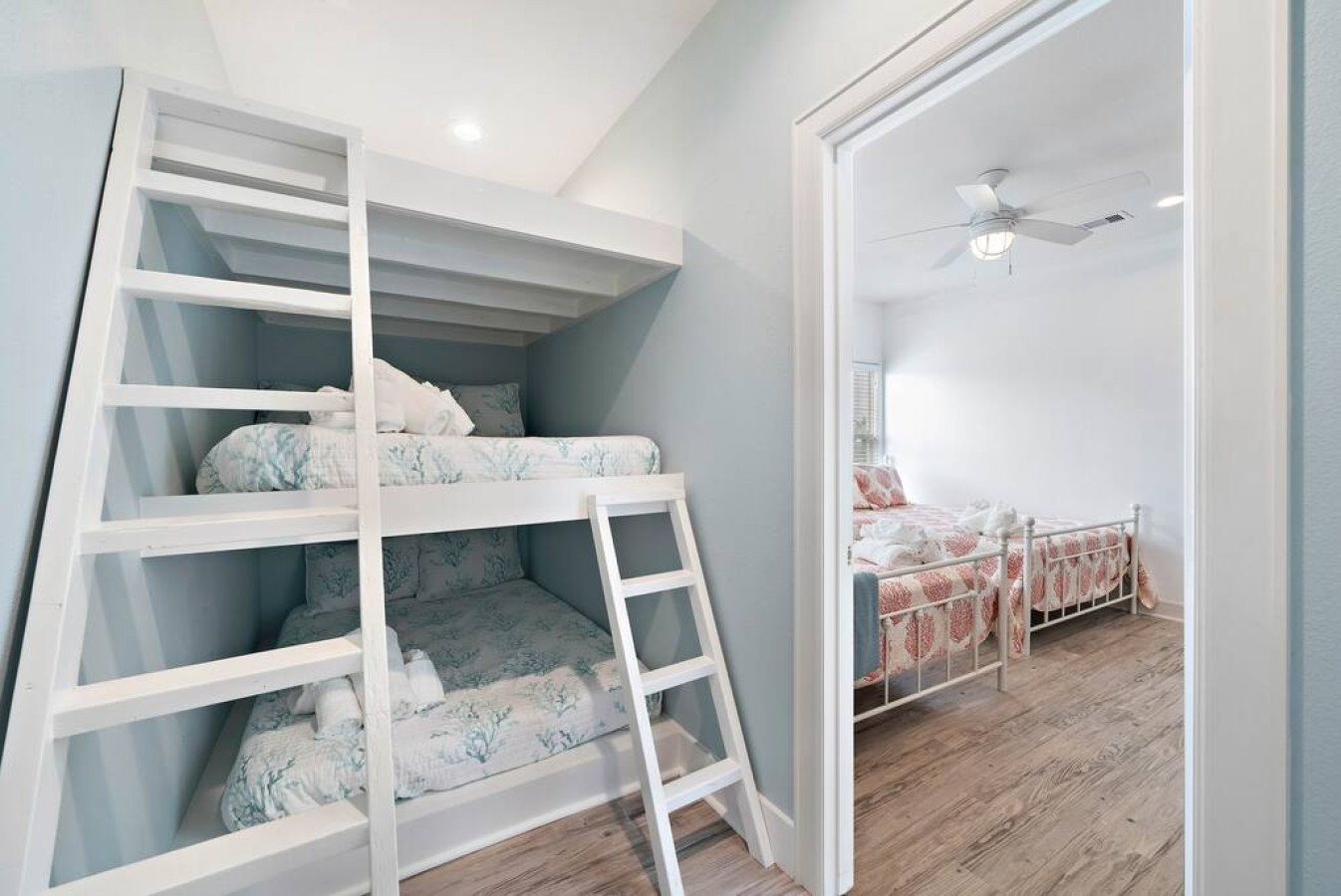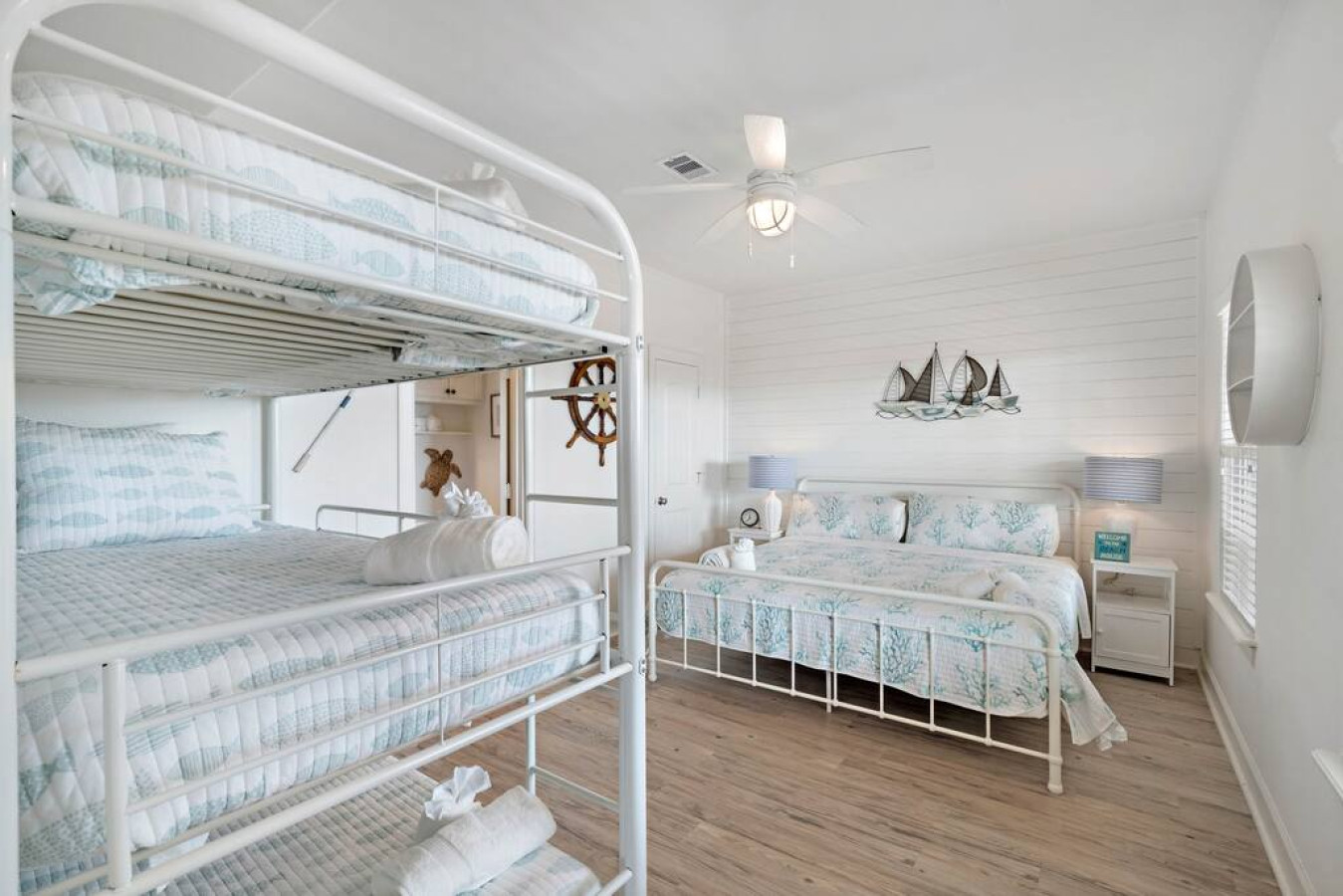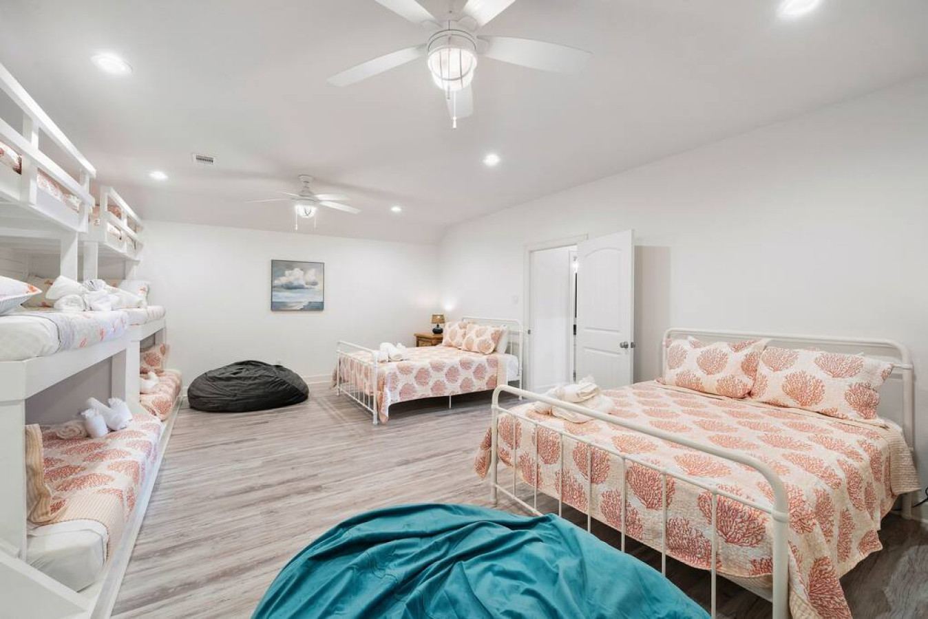 “This is the perfect place to stay - big or small groups. We love staying here. Great for family get togethers. This house has it all. Enough “adult” bedrooms with bathroom’s attached and then that wonderful bunk room. It’s amazing. Just a 5 minute walk to the beach and down the street is a local grocery store. There is also a 24 hour circle K too. The neighborhood is quiet but not overly. Overall a terrific home in a good location. :)”