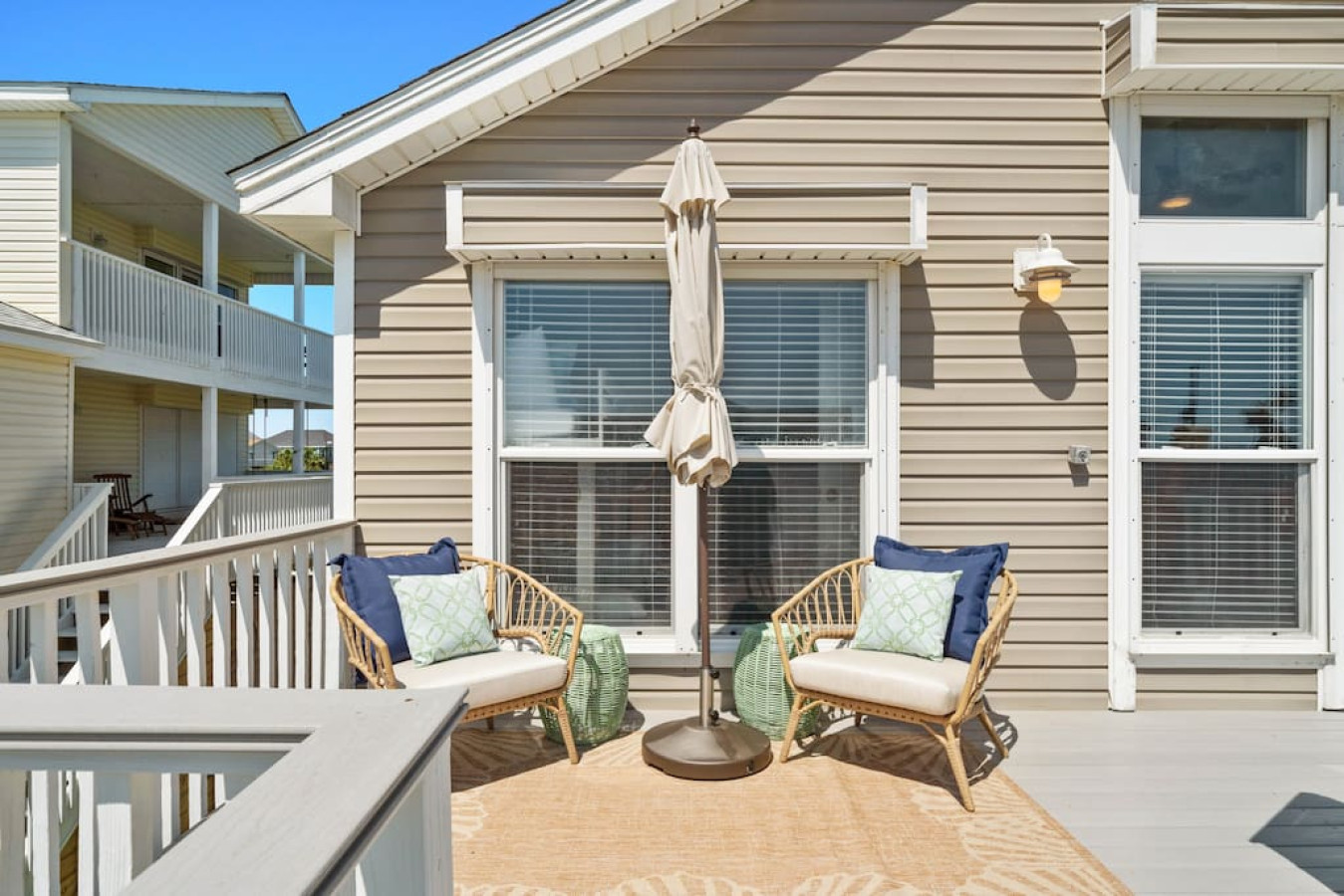 Step outside onto the expansive front porch, where you can enjoy a cup of coffee in the morning sea breeze or gather for an evening social under the fairy lights. The large backyard offers even more space for fun in the sun. Host a family cookout with the BBQ grill, have a picnic under the shade of the house, or roast marshmallows around the fire pit as you share stories under the starry sky.